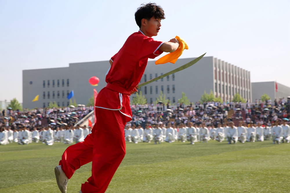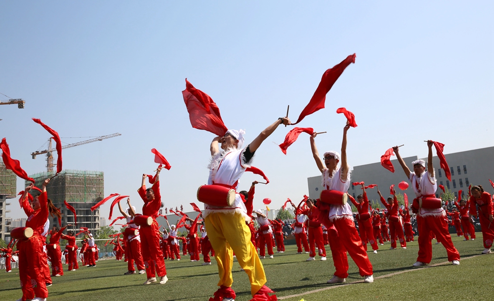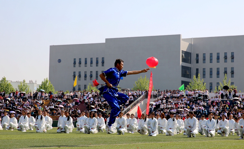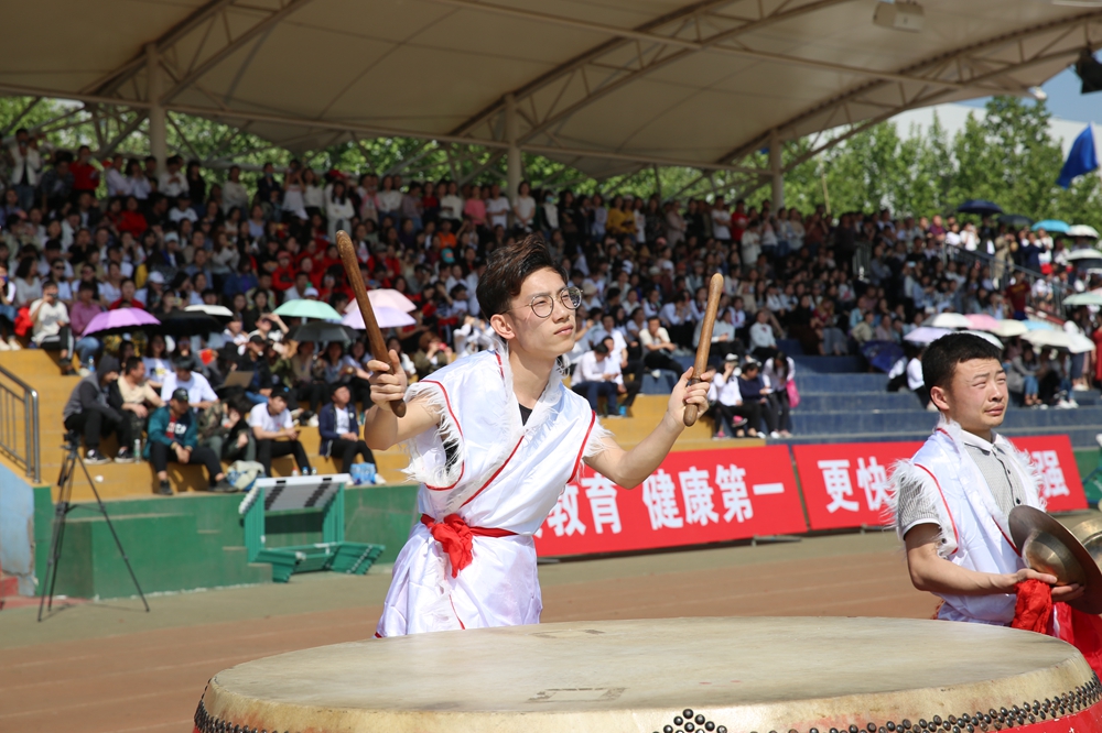 由何伟、牛晓强、樊宝宝编导,医药学院2017级本科240名学生表演的《古韵秦风》,彰显了我校学子的热情奔放和豪迈气概。