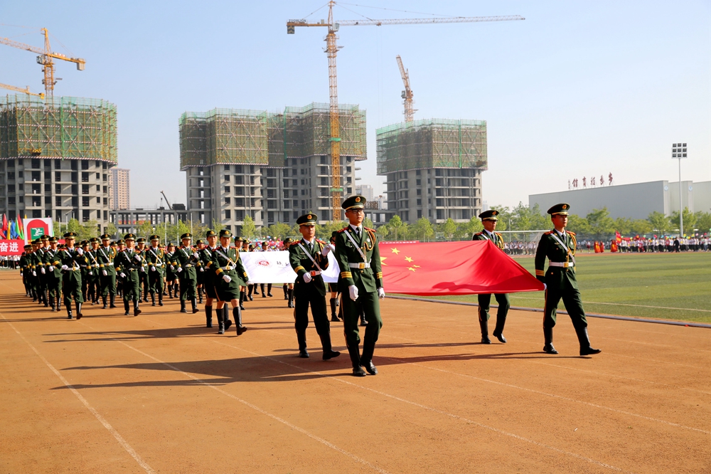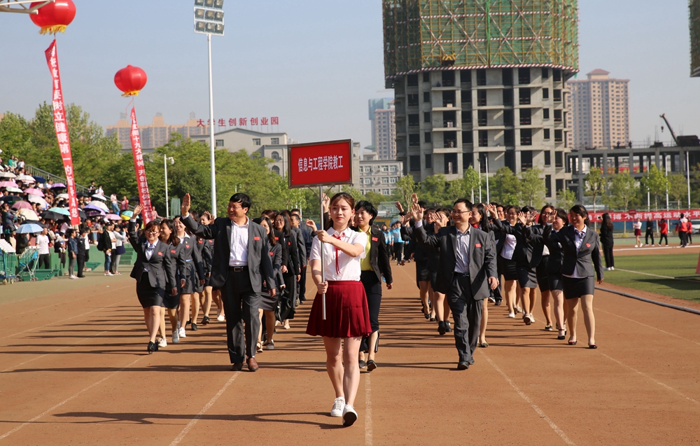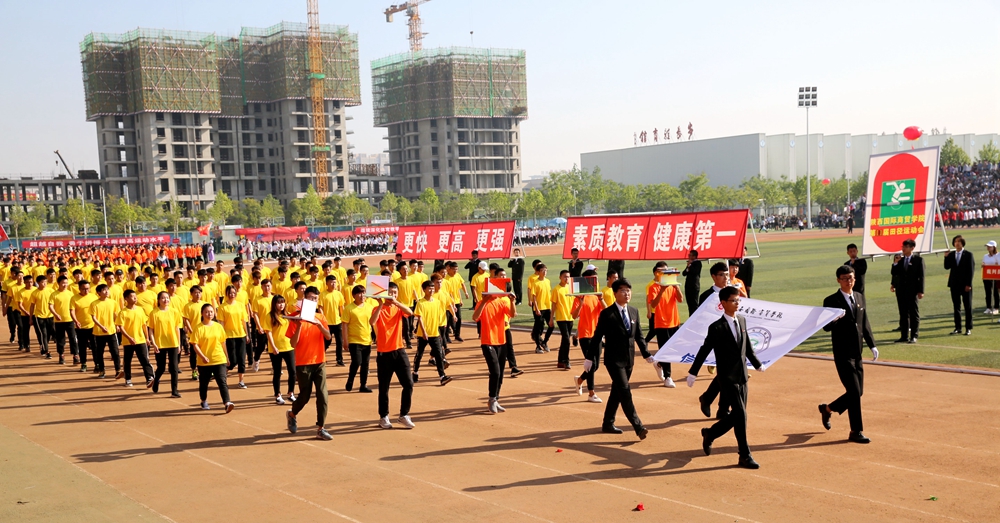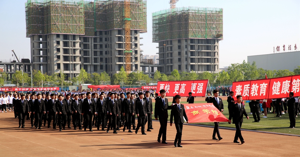 看着精神饱满、英姿飒爽、步伐统一的裁判、运动员和各学院的代表方阵昂首阔步走进体育场,听到他们响彻云霄的口号声,黄新民院长宣布:“陕西国际商贸学院第十一届田径运动会开幕”。