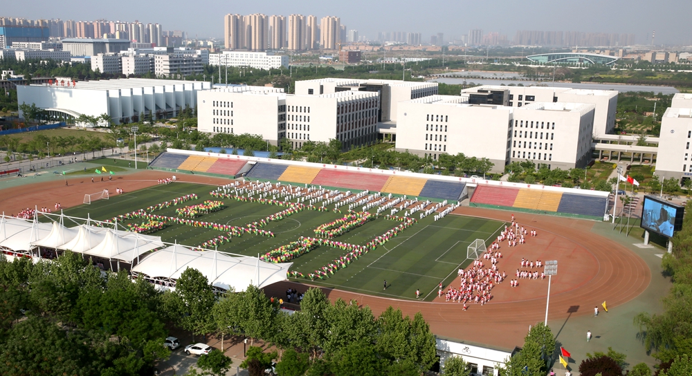 在开幕式上,由我校千余名学生表演的大型团体操以身体的舞动向我们展示了新时代腾飞的商院的新面貌、新精神和新梦想。这组“商院腾飞”以运动的姿态和竞争的精神,彰显出商院人顽强的意志和创造的力量。它是2018年春季运动会的序曲,也是我校转型跨越的一次奋斗、拼搏、感动和呐喊。
