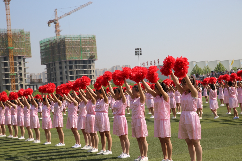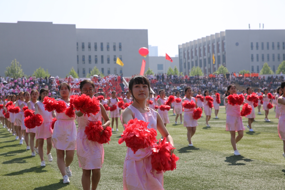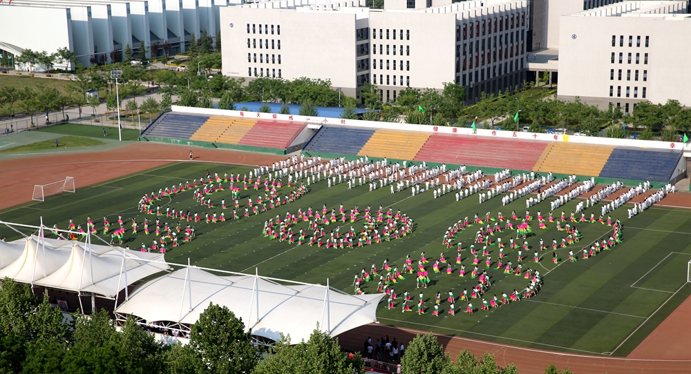 由赵阳、刘大为老师编导,2016级324名女生表演的《我的中国梦》团体操,通过“四方形、十九、圆形花朵、田、2018”五个造型,演绎了商院人活力四射的激情、坚定践行十九大精神的执着以及爱校如家的款款深情,也展示了商贸学子风华正茂、能量爆棚的精神面貌,更是舞出了全体师生的梦想。