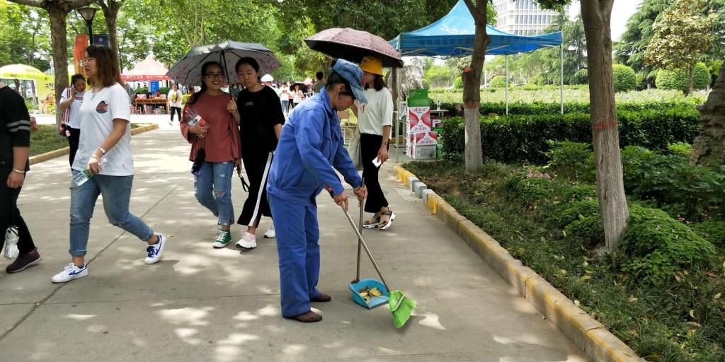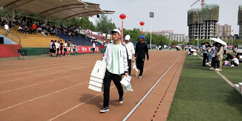 赛场内外清扫垃圾的保洁阿姨,维持着赛场外车辆秩序的保安大叔,你们是如此的平凡,平凡到我们从未留意到即便是随处可见的你们辛勤劳作的身影。正是你们默默辛勤的付出,运动会才得以顺利举行。运动场上,你们亦是风景。——致敬后勤工作人员。