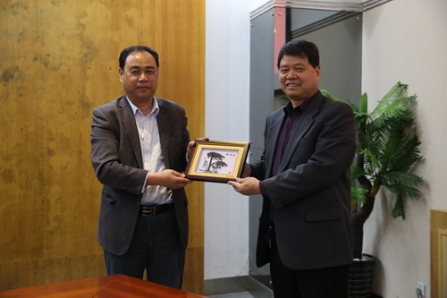 座谈会上,合肥学院公共事务与国有资产管理处处长徐劲松,学工部部长、学生处处长董承军分别从各自分管工作出发说明了此次来访的目的和意图以及考察内容。党委副书记、副院长徐唯诚代表学校对考察团一行的到访表示热烈欢迎。回顾了我校与合肥学院校校合作的渊源,并从始于过去、立足现在、放眼未来三个层面全面介绍了学校的办学理念、办学规模、办学特色等。合肥学院徐劲松处长代表合肥学院向我校领导赠送了纪念品并合影留念,感谢学院的热情接待,并以此希望两校关系能够越来越密切。