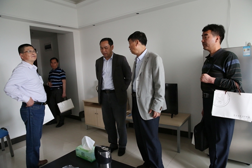 合肥学院公共事务与国有资产管理处处长徐劲松(上图)、学工部部长董承军说明考察内容