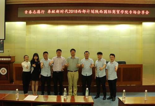 本网讯 5月18日中午,“青春志愿行,奉献新时代”——2018年陕西省西部计划优秀志愿者宣讲专场报告会在我校学术报告厅二楼举行。学校党委副书记、副院长徐唯诚出席分享会。校团委以及各二级学院团总支书记、毕业班辅导员、300余名毕业生代表到会聆听报告。