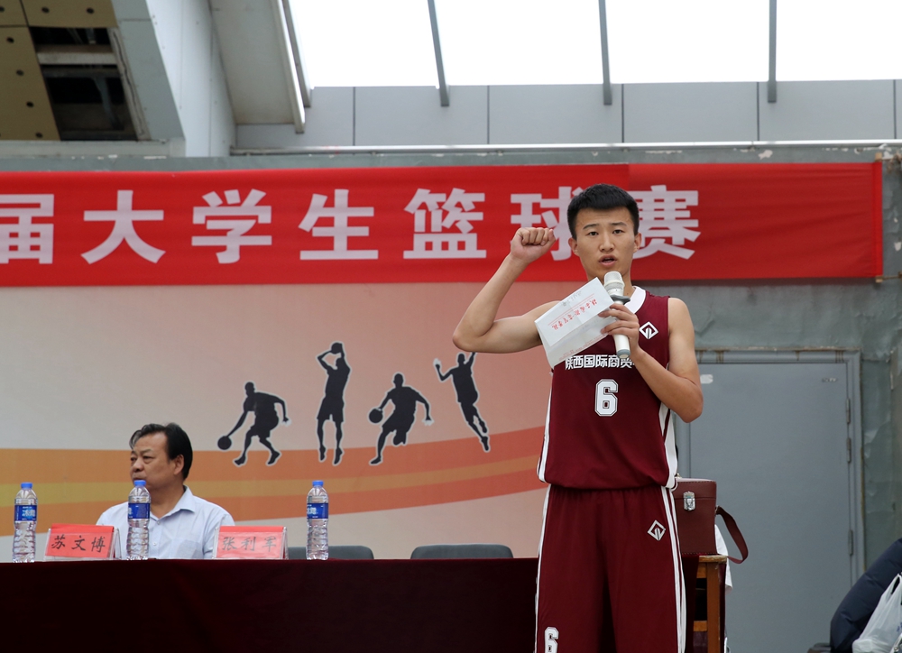 本网讯 2018年6月1日下午,咸阳市第五届大学生篮球联赛开幕式在我校举行。咸阳市体育局局长贾东林,陕西省民办高校体育联合会理事长、陕西国际商贸学院院长黄新民教授,咸阳市体育局副局长、组委会主任孙宏斌,咸阳市高校体育联合会主席、陕西国际商贸学院体育部部长刘万斌教授,咸阳市高校体育联合会副主席、陕西中医药大学体育部部长马学文教授,陕西国际商贸学院党委工作部部长王瑞,校保卫处处长苏文博,咸阳职业技术学院体育学院书记高栋,西藏民族大学领队张磊以及各兄弟院校代表队的领队出席开幕式。开幕式由刘万斌主席主持。本次比赛共有男女14个院校代表队参赛。