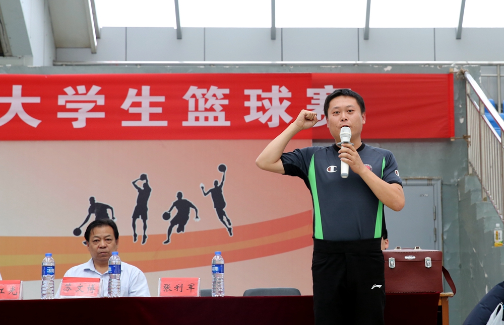 孙宏斌副局长致开幕辞。孙宏斌副局长讲到,在全市认真学习十九大精神,积极迎接陕西省第十六届运动会的到来的紧张时刻,我们迎来了咸阳市第五届大学生篮球联赛。希望同学们坚持友谊第一、比赛第二的体育道德精神。在比赛中发扬顽强拼搏、团结合作的团队精神,以良好的体育道德风尚,以饱满的热情参加比赛,赛出风格、赛出水平。同时也希望通过本次比赛,进一步加强各高校之间的联系和学习交流,有力推动我市各高校校园篮球运动、学生阳光体育运动及全民健身活动的蓬勃开展,以实际行动迎接陕西第十六届运动会在我市的胜利召开。