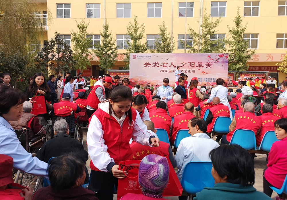 本网讯 秋高气爽,佳节重阳。为弘扬中华民族尊老敬老的传统美德,培养青年尊老敬老的良好品德,10月17日上午,校团委组织十余名青年志愿者利用课余时间前往咸阳市王道老年公寓参加沣西新城重阳节志愿活动。