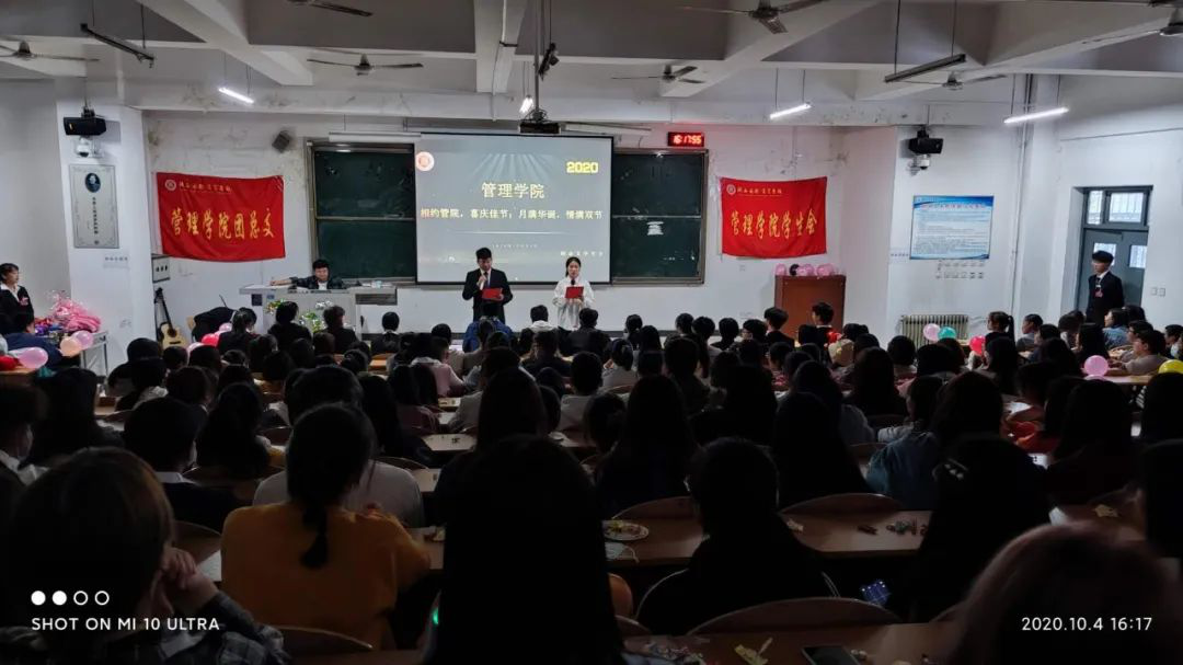 管理学院组织在校学生开展了以“喜迎国庆,情浓中秋”主题观影、新生座谈会、关爱新生等活动,极大丰富了同学们的假期生活。
