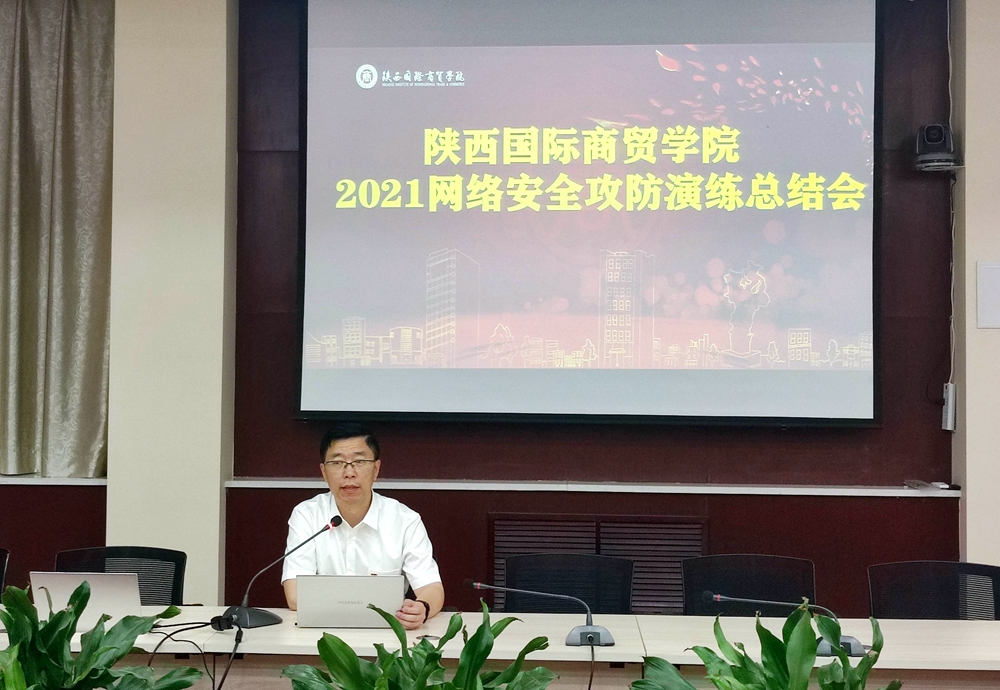 本网讯 6月24日下午,我校2021年网络安全攻防应急演练总结会议在行政楼五楼第三会议室举行,会议邀请了教育厅攻防演习总裁判长,西北大学网络和数据中心信息化教学室主任孙骞教授作网络安全专题报告。校长张辉出席会议,会议由信息化中心副主任杜军伟主持。攻防演练执行组全体人员、全体防守队员、信息化中心全体参加了会议。