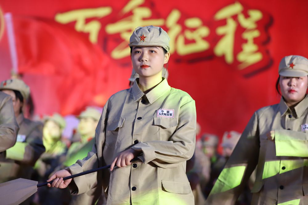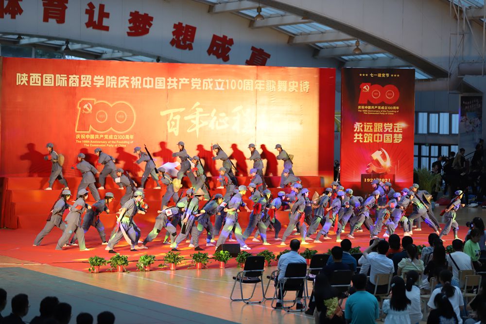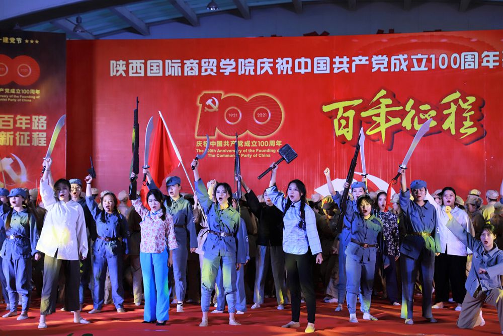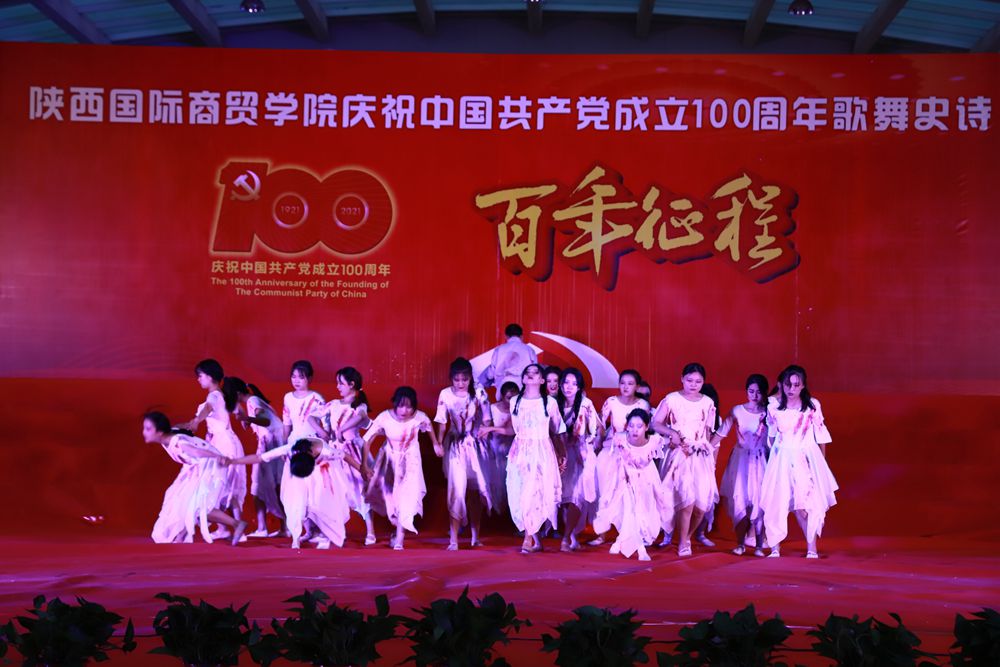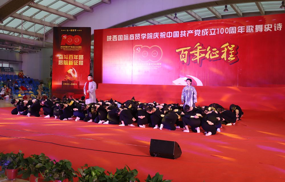 本网讯 以艺术回眸百年历史,颂经典缅怀英雄事迹。2021年6月24日晚,由中共陕西国际商贸学院委员会主办,党委工作部和文学与教育学院联合承办的庆祝建党一百周年大型歌舞史剧《百年征程》在学校体育馆隆重上演。