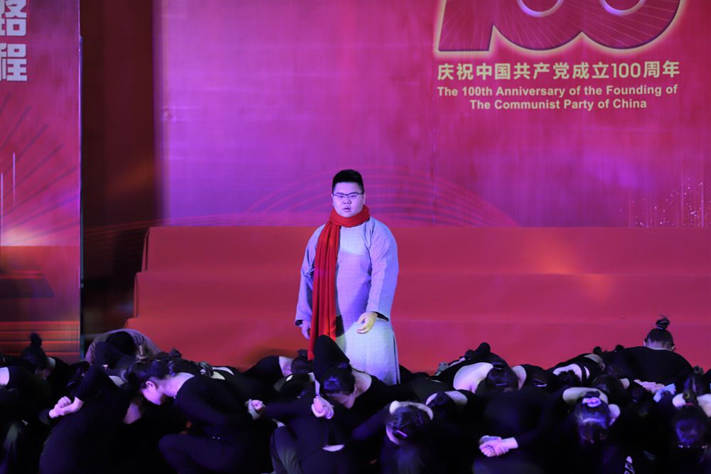 舞剧由文学与教育学院学前教育专业青年舞蹈老师杨梦创编。立足历史真实,内容包括《船•说》《红军不怕远征难》《卢沟烽火-南京-永不忘却》等在内的3章15节的党史剧目,创排理念将红船精神、抗日精神、长征精神、延安精神、西柏坡精神以及艰苦奋斗的革命精神灌输全剧始终,并在展示共产党百年奋斗历程的同时,将我党光荣传统、优良作风、重大历史转折事件以及英雄模范事迹融入表演,使剧情环环相扣,更富有感染力和教育意义。多种舞台艺术的集结、经典与新作的并呈带领观众穿梭于百年来各个历史片段,绘就党的精神图谱和时代画像。