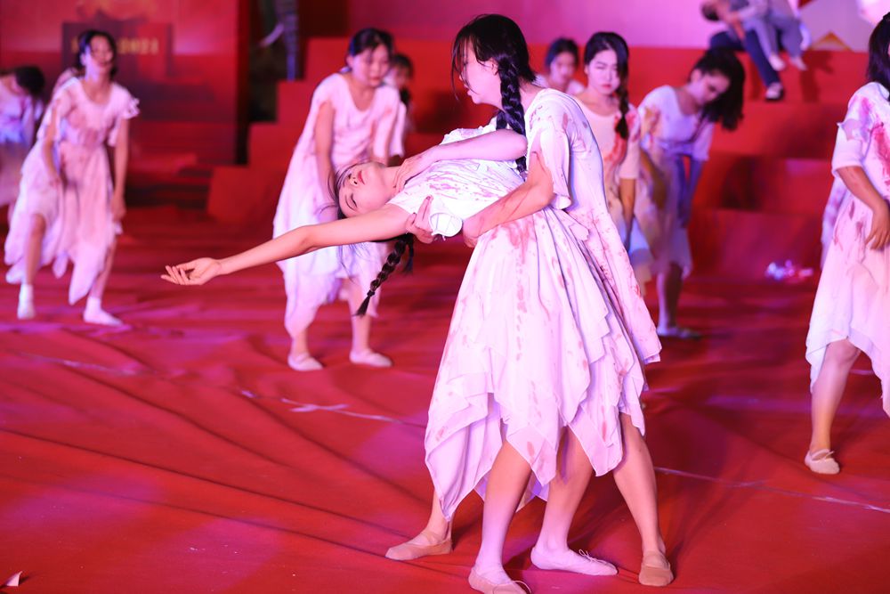 本次参与表演的舞蹈演员近一千人,台前幕后近一千五百人。整台舞剧的精彩表演充分表达了师生们对中国共产党建党百年的深情祝福,展现出了当代青年永远跟党走的信心决心和良好的精神面貌,进一步激发了他们的爱国情怀。表演现场氛围十分热烈,精彩的节目赢得观众阵阵掌声。