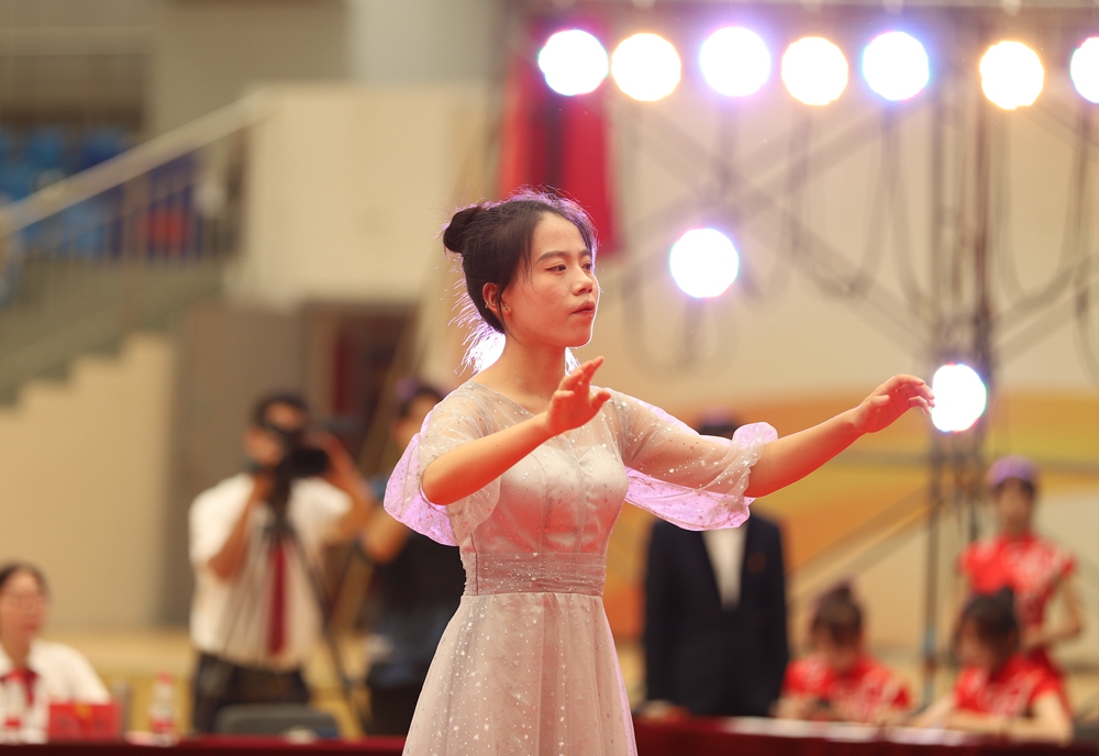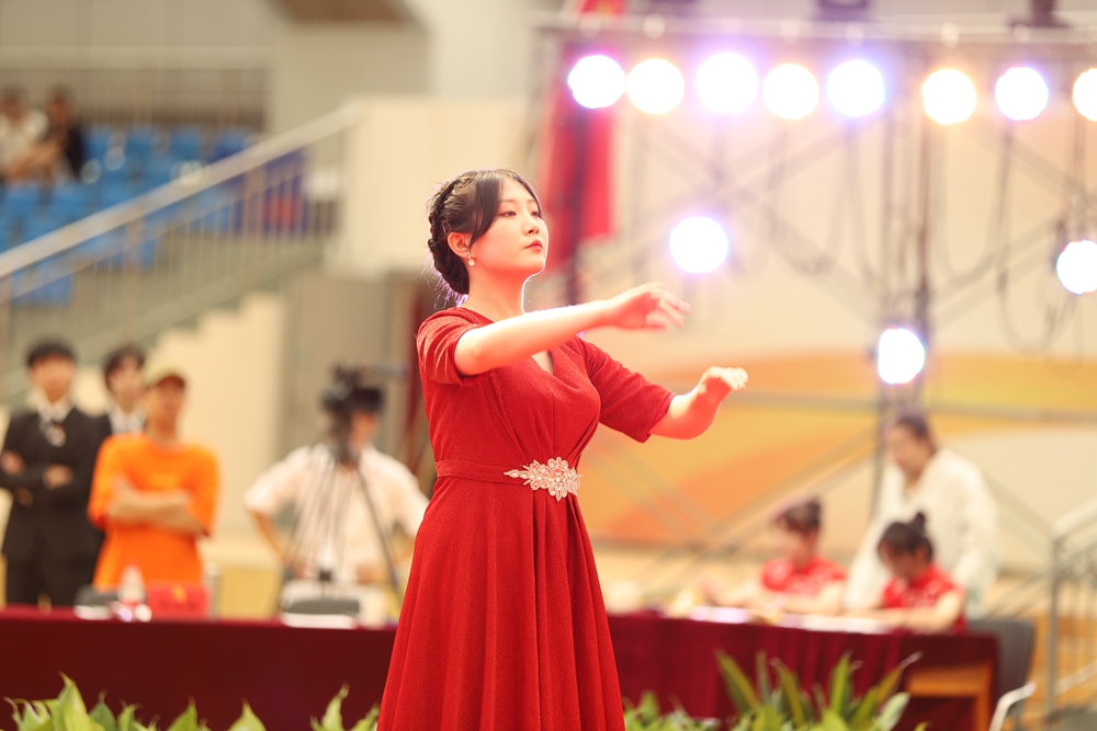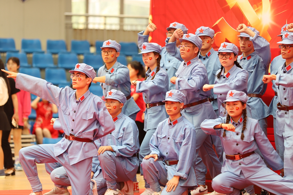 继续教育学院参赛队表演《迎风飘扬的旗》《商院赞歌》,唱出了中华儿女的奋发图强,唱出了中国共产党的革命气势,更唱出了亿万中国人的强国之心。
