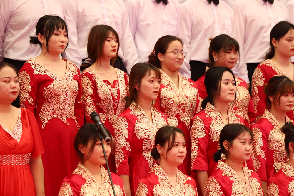 来自各二级学院的10支参赛队伍以及校领导和各职能处室教职员工组成的表演队伍依次登台演唱,把对党、对国家的热爱融入到歌声中,以昂扬的精神状态唱响听党话、感党恩、跟党走的时代主旋律,表达了对党的深深祝福。