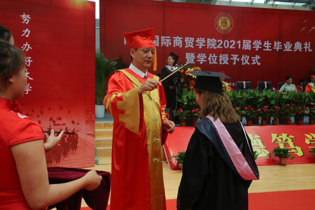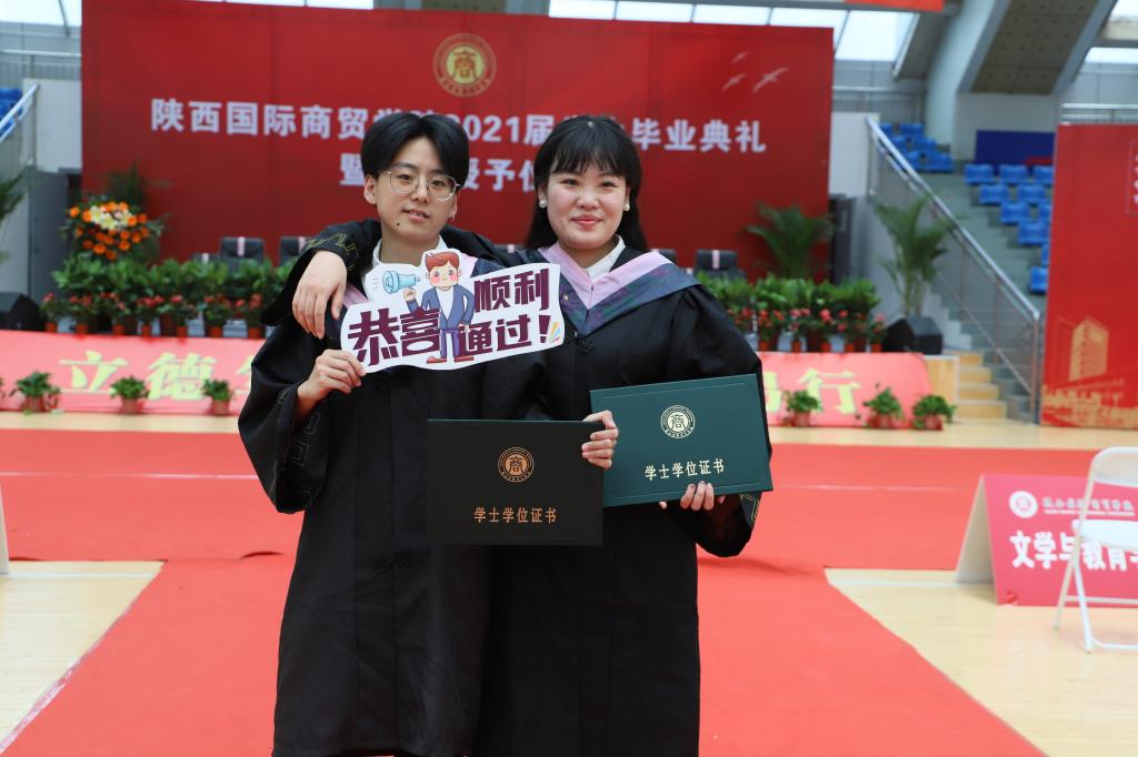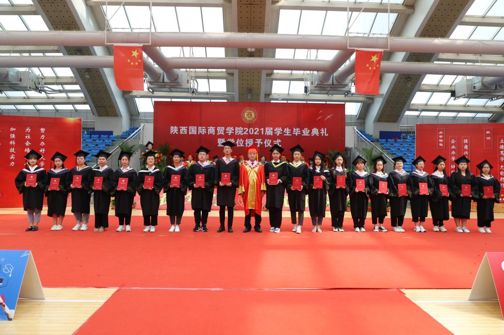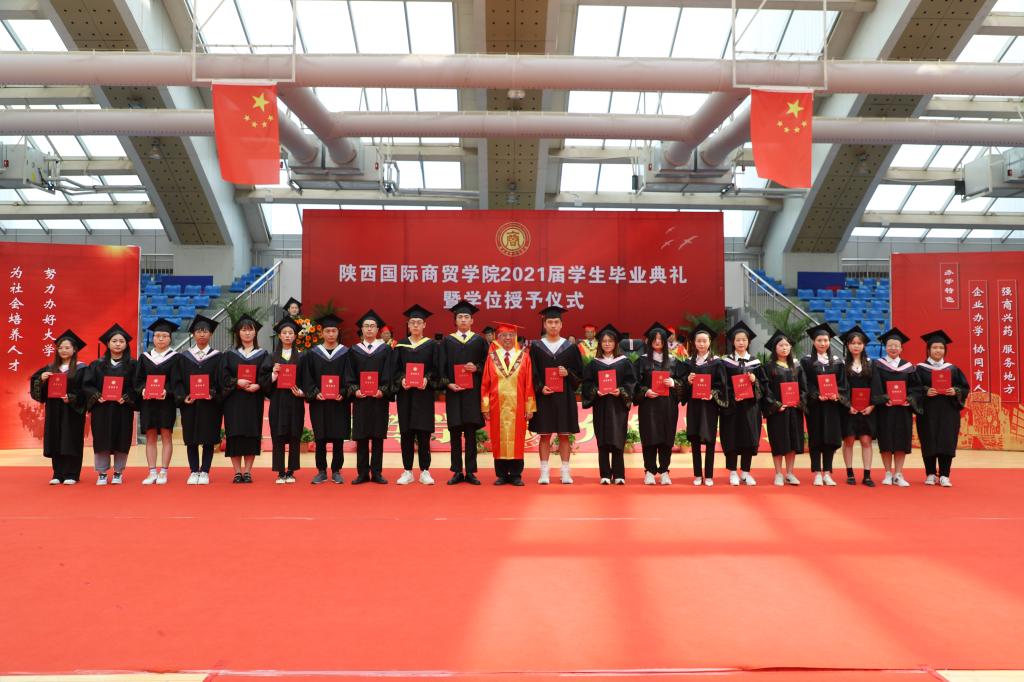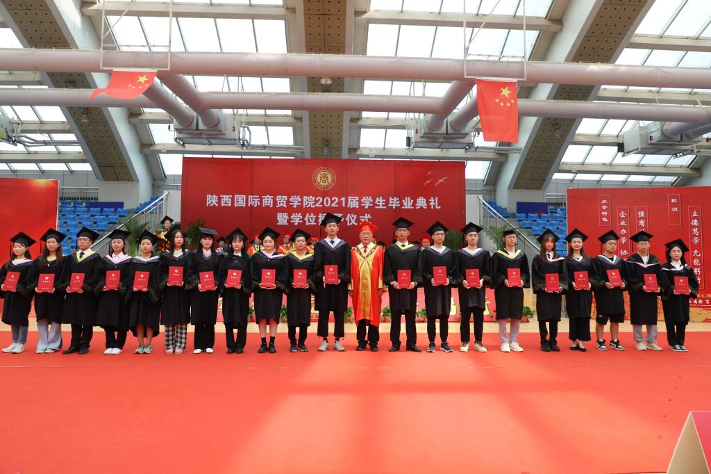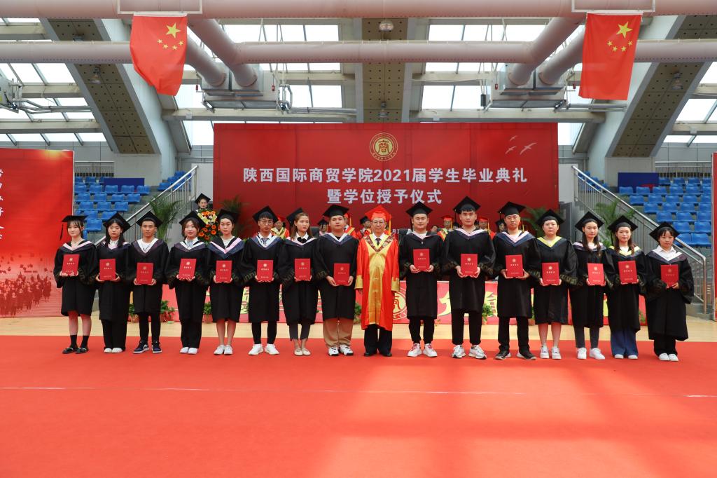 梁季仓宣读《陕西国际商贸学院关于2021届学生毕(结)业情况的通报》和《陕西国际商贸学院授予2021届本科毕业生学士学位的决定》;贾明远宣读《关于表彰2021届陕西高校优秀毕业生和优秀学生干部的通报》《陕西国际商贸学院关于表彰2021届考取硕士研究生毕业生的决定》《陕西国际商贸学院关于表彰2021届优秀毕业生和优秀毕业生干部的决定》;