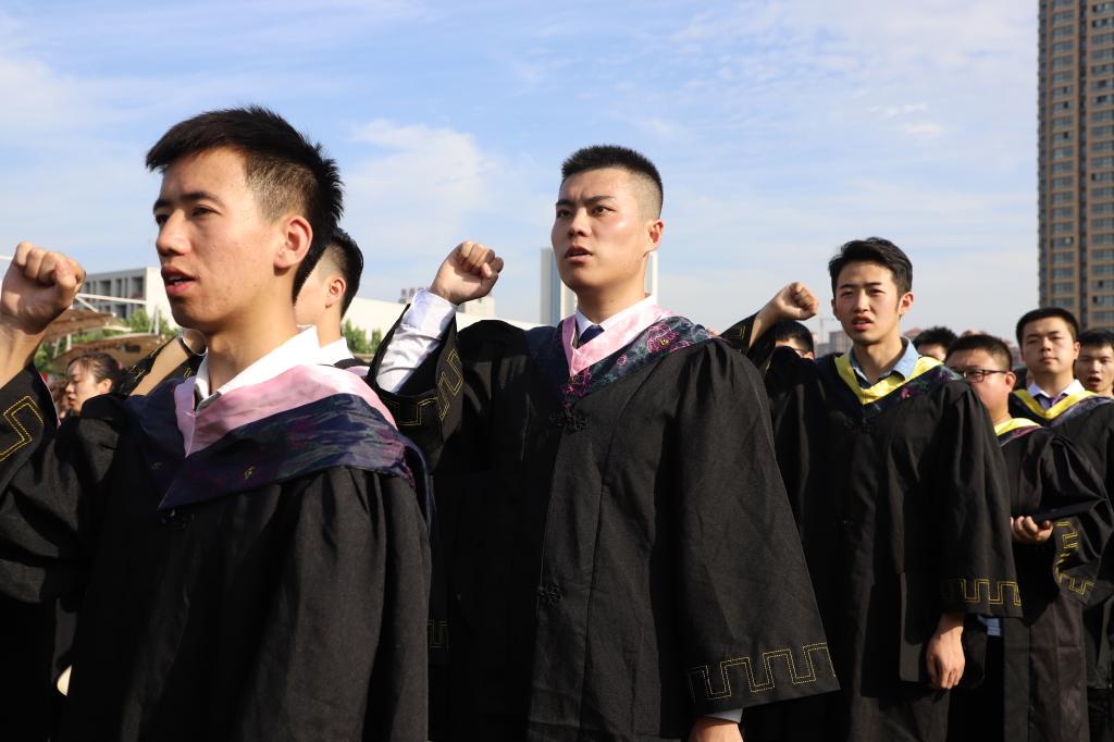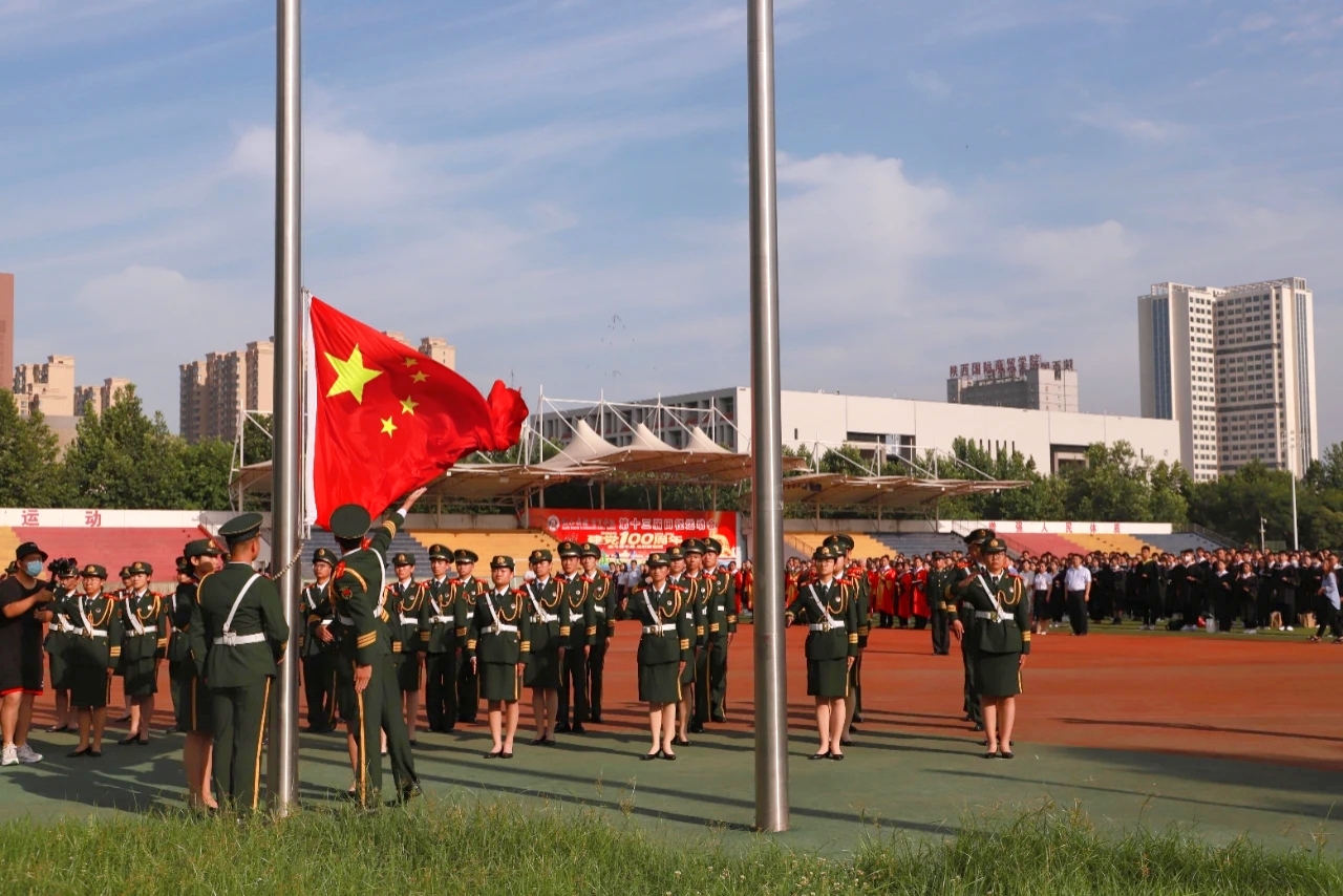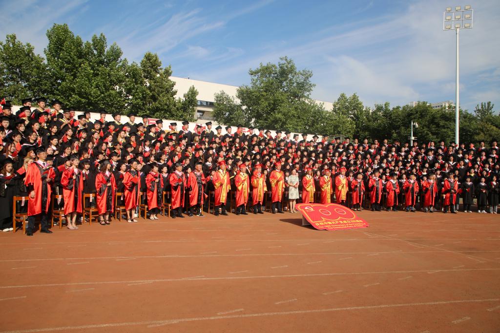 典礼开始前,全体人员与毕业生在南校区操场进行了最后一次升国旗仪式并在国旗下庄严宣誓,践行“立德笃学、允能躬行”之校训,发扬“尚德励志、勤奋自强、求实拓新、包容开放”之精神;随后,全体人员合影留念,齐唱《没有共产党就没有新中国》,参观党史图文展,在回望党的奋斗历程中感悟初心使命,争当新时代的有为青年。请党放心,强国有我!