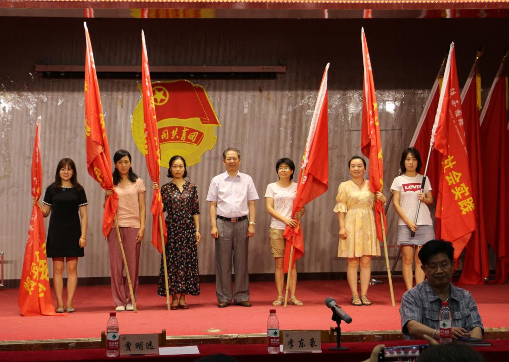 最后,学校常务副校长、党委副书记、纪委书记贾明远分别为社会实践团队授旗。他在讲话中指出各实践团队在开展社会实践活动中要注重实践成果的凝练和展现;并着重强调暑期开展社会实践活动要把安全放在第一位。