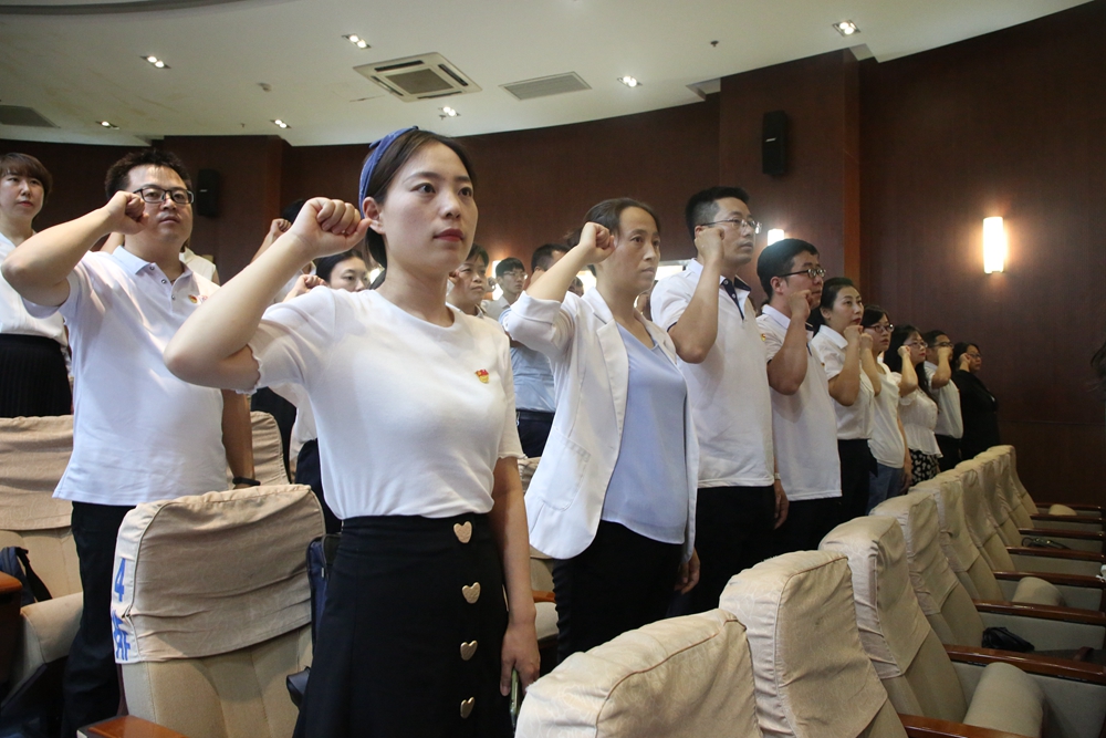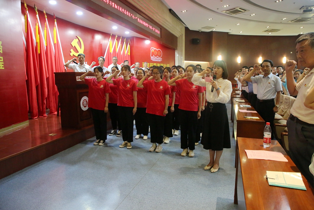新发展党员进行入党宣誓,与会党员重温入党誓词