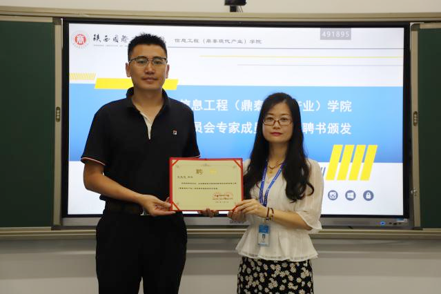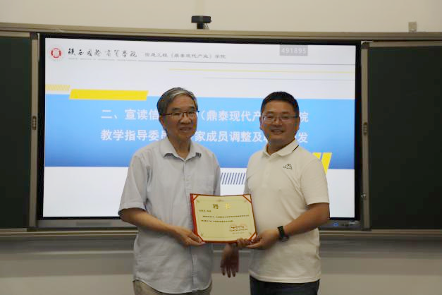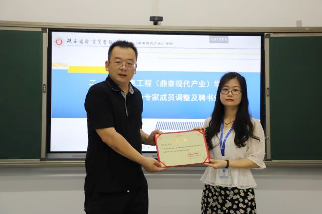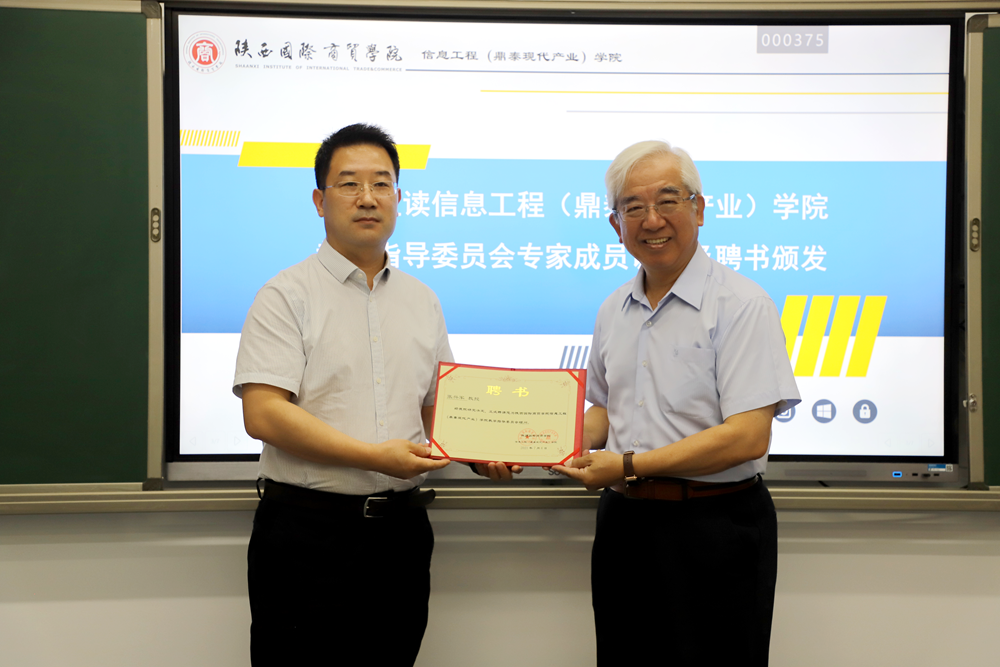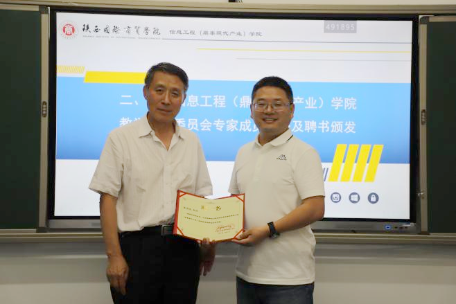 会上还举行了校外专家顾问聘任仪式,学校副校长梁季仓为西安交通大学计算机学院院长张兴军教授、国家级教学名师、西安交通大学本科教学督导组组长冯博琴教授、西安交通大学本科教学督导副组长、工程教育认证专家董渭清教授、广州粤嵌西安公司总经理王乐忠先生、西安沐风科技有限公司总经理郑臣亮先生颁发聘书,仪式结束与会专家对学院专业建设、学科交叉、校企合作、科教融合等方面对学院提出了非常宝贵的意见与建议,也对现代产业学院的发展提出了很高的期望。