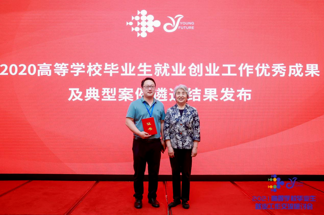 在大会“成果发布”阶段,我校入选2020年高等学校毕业生就业创业优秀成果和典型案例。高校毕业生就业协会会长、北京语言大学原党委书记王路江教授为我校颁发荣誉证书。