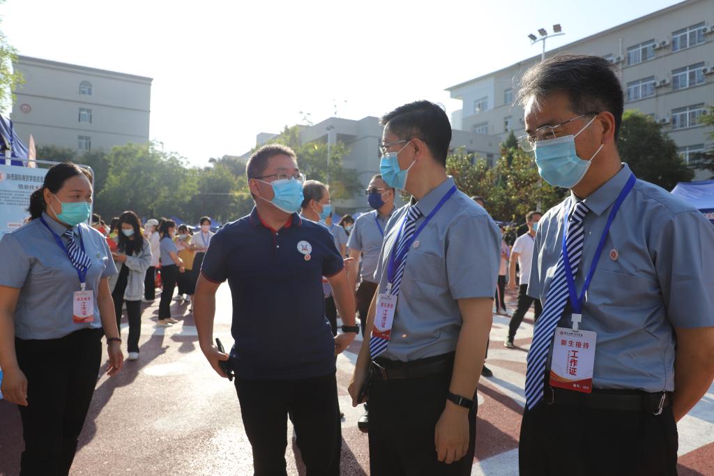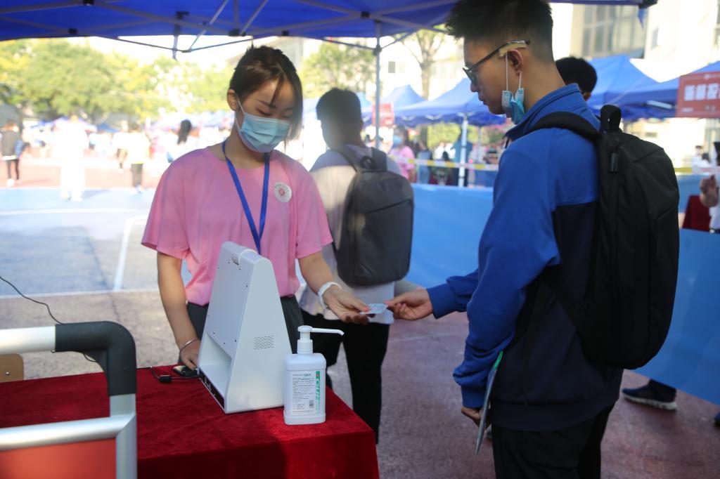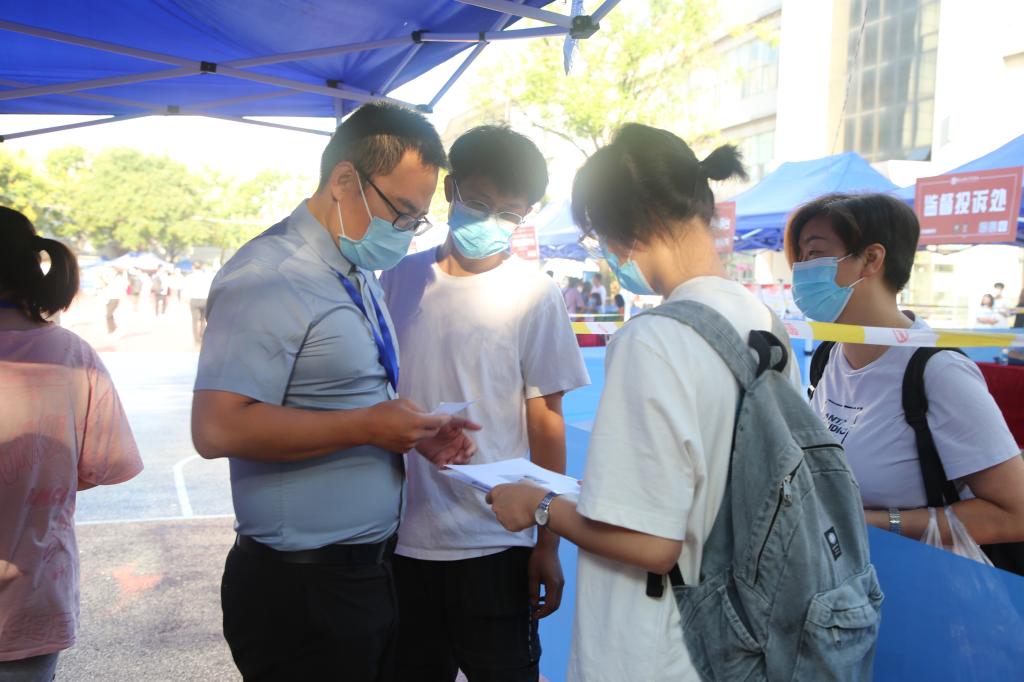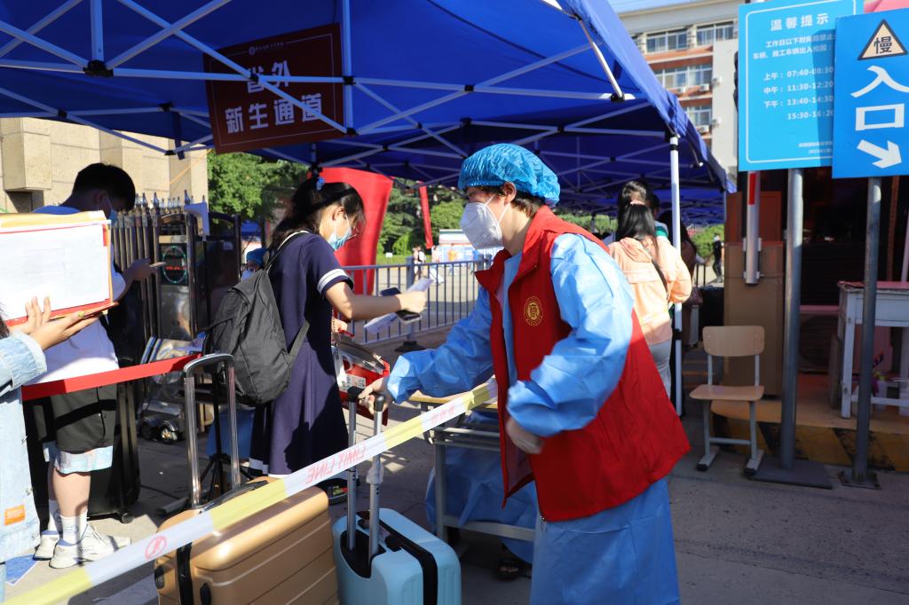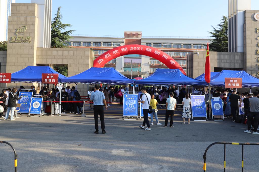 学生报到期间,全校上下齐心协力,确保各个环节和流程不出差错,全力做好新生入学报到工作。在北校区门口,设置了值班点、临时观测点、扫码区、测温区和行李消杀区,省内通道和省外通道,在通道入口处安排党员干部负责查验健康码、行程卡等入校信息,完成全部入校流程后。由200多名步长青年志愿服务队引导至迎新现场办理入校手续。