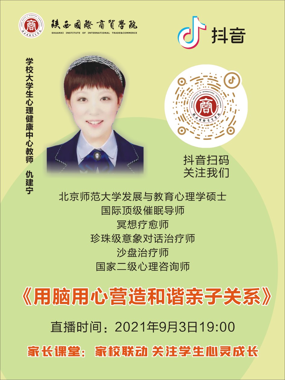 本网讯 新学期开学季,为加强家校联动,帮助家长更新教育观念,引导家长关注关爱学生心理健康,营造良好的家校协同育人的良好氛围,学生工作处会同马克思主义学院联合举办以“家校联动关注学生心成长”为主题的公益讲堂,学校大学生心理健康中心张亚男、仇建宁老师,分别于9月1日、9月3日在“抖音”直播开讲。