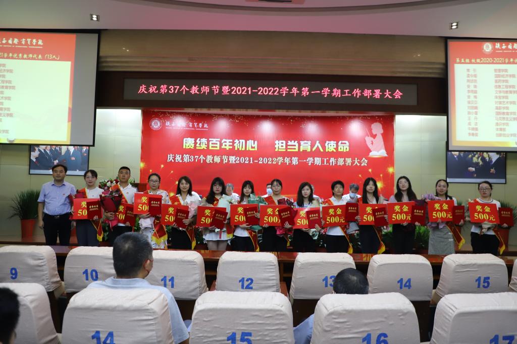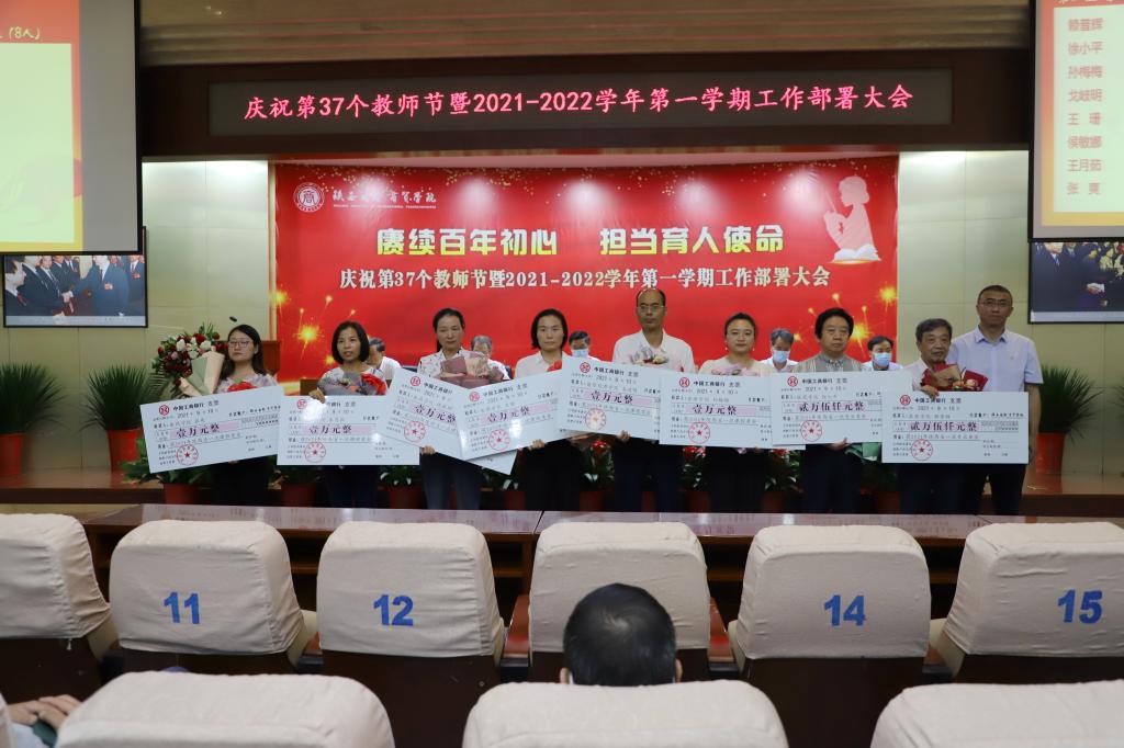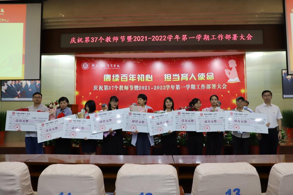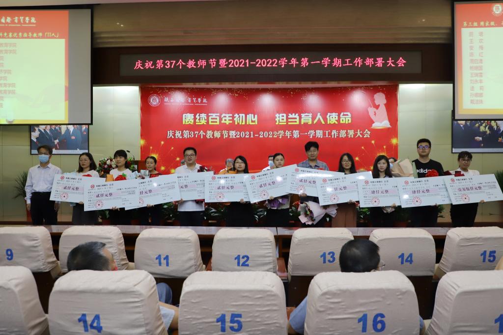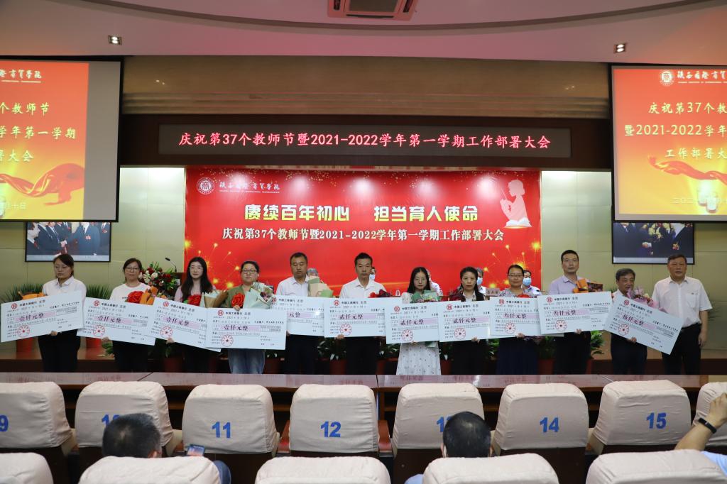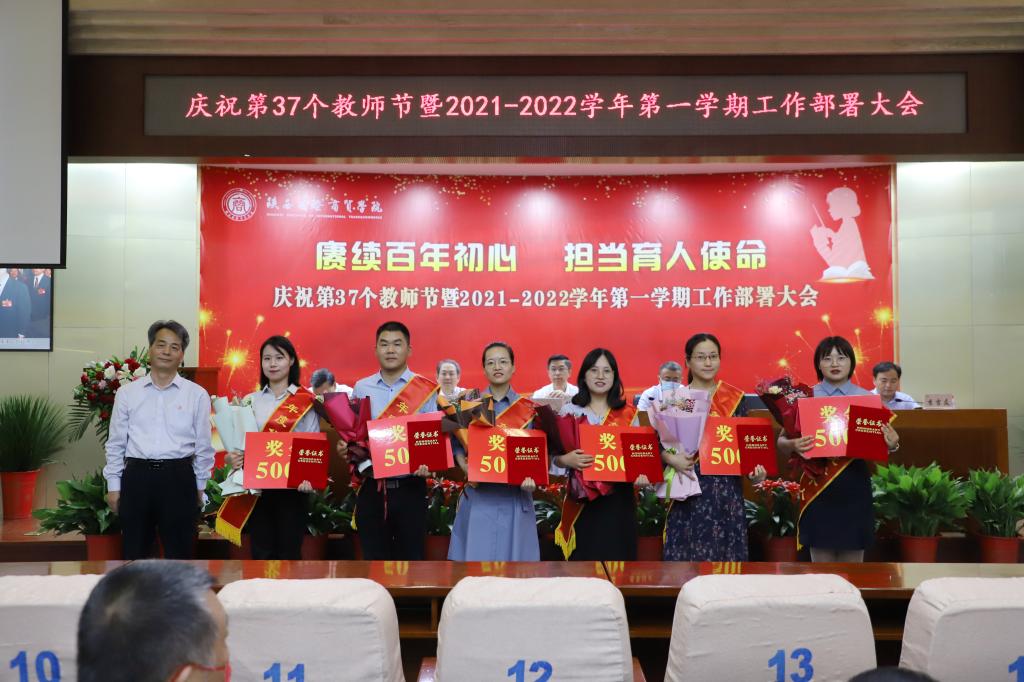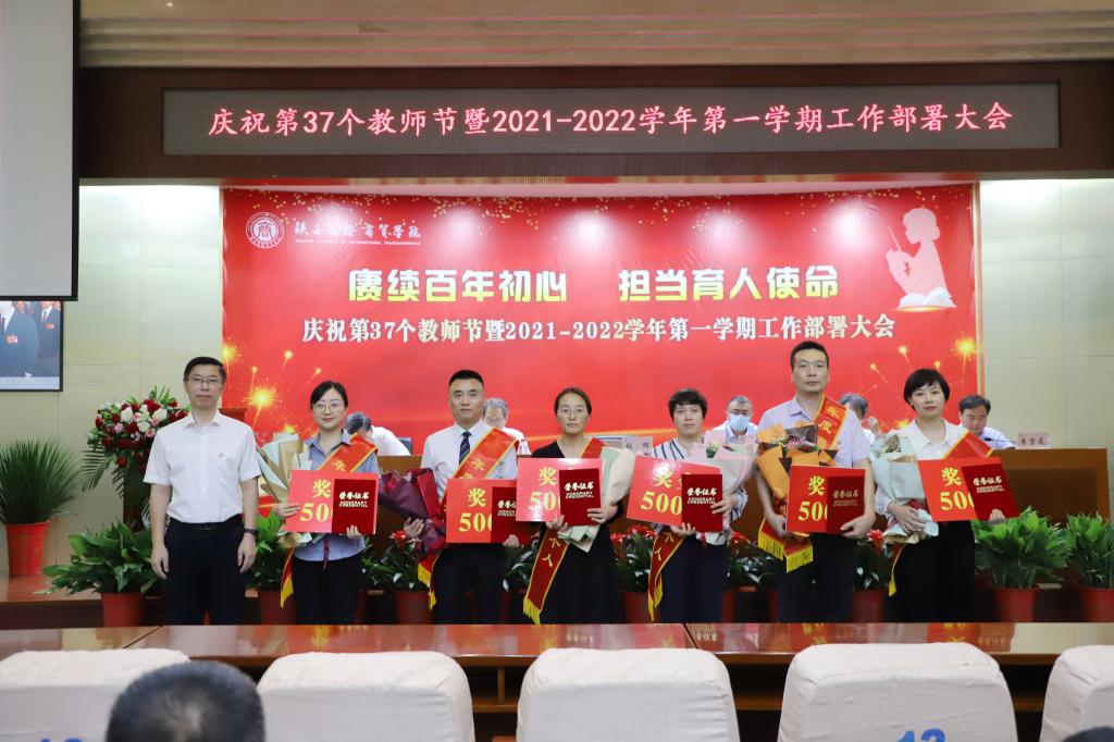 本网讯:“赓续百年初心 担当育人使命”,在迎来第37个教师节之际,9月10日下午,我校在学术报告厅二楼隆重举行庆祝第37个教师节暨2021-2022学年第一学期工作部署大会。全体在校校领导,各部门、各单位负责人,受表彰的先进集体和个人,师生代表参加大会。大会由常务副校长贾明远主持。