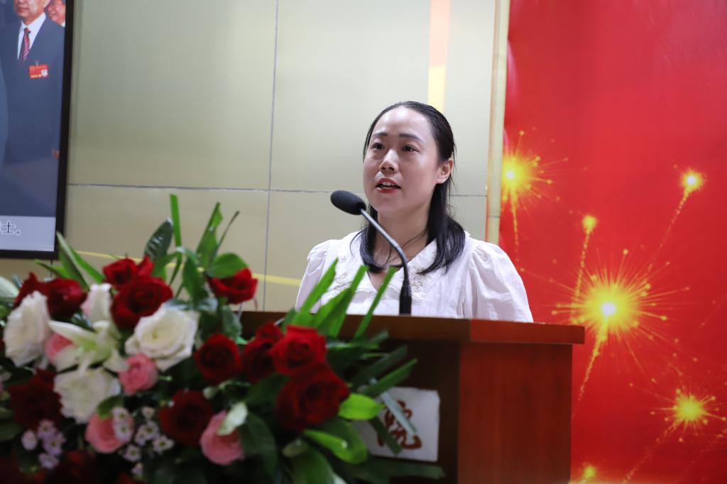 国际经济学院孟令瑶作为教师代表发言,与大家分享交流了她在科研的道路上,追寻真理,攻坚克难的经历以及对教师职业的认识和做好教书育人工作的体会。