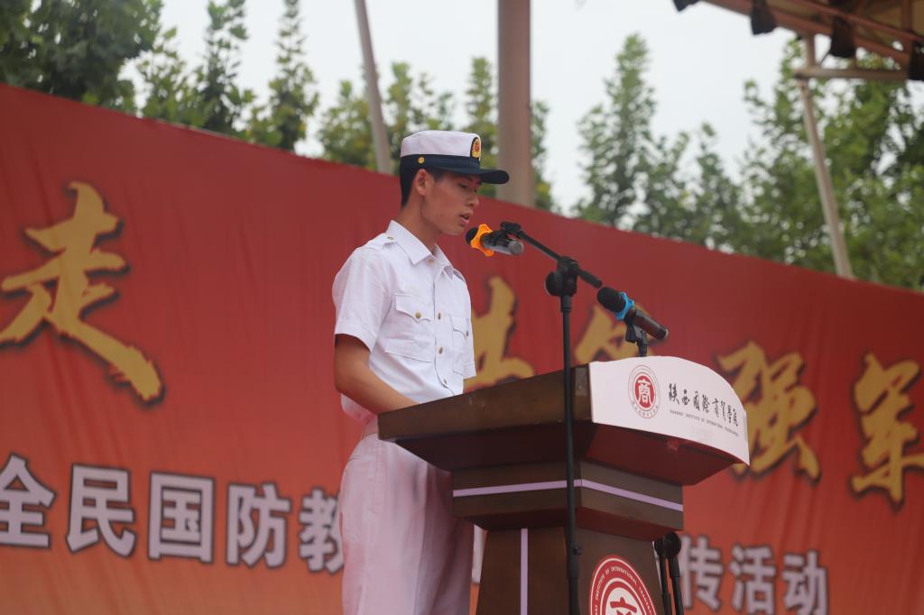 张辉为活动致辞。他谈到,时值第21个全民国防教育日来临之际,军分区领导莅临学校指导主题宣传活动,体现了咸阳军分区对高校国防教育的高度重视,是对学校深入学习贯彻习近平强军思想和贯彻新时代军事战略方针的再动员和再促进。他讲到,党的十九大鲜明提出习近平强军思想,为实现党在新时代的强军目标、把人民军队全面建成世界一流军队提供了根本引领和科学指南。学校高度重视和平时期不断加强国防教育目的意义的内涵理解,充分认识到高校在国防教育和大学生参军入伍对加快国防和军队现代化、支撑人才强军有着义不容辞的责任和义务,学校成立了专班机构,明确专人负责大学生国防教育和征兵工作,及时将习近平强军思想和强军目标传达到学生之中,不断丰富学校国防教育的载体和提高育人能力,鼓励优秀大学生携笔从戎,参军入伍,在部队的大熔炉中展现才华。他表示,学校将深入学习贯彻习近平强军思想,落实各级要求,开展好大学生国防教育和征兵工作,为二〇二七年实现建军百年奋斗目标贡献高校力量。