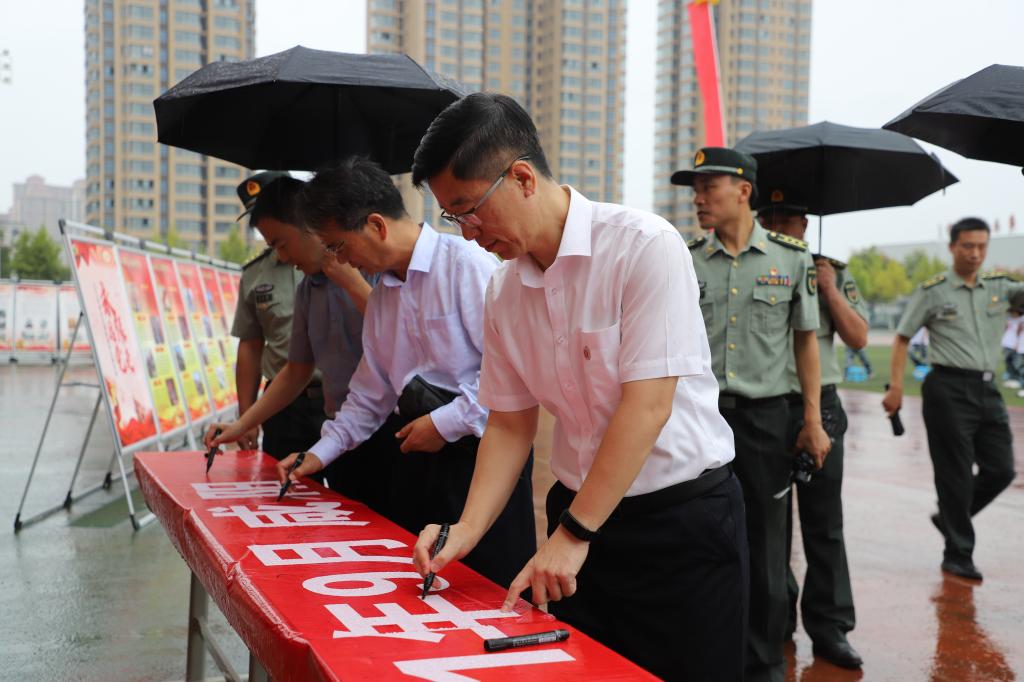 与会军地领导、学校师生代表参与了集体签名活动,观看了党史教育、国防教育图片展,参观了学校中药标本馆和宝玉石陈列馆。军分区战士在活动现场讲解了轻武器性能,演示了战术动作。