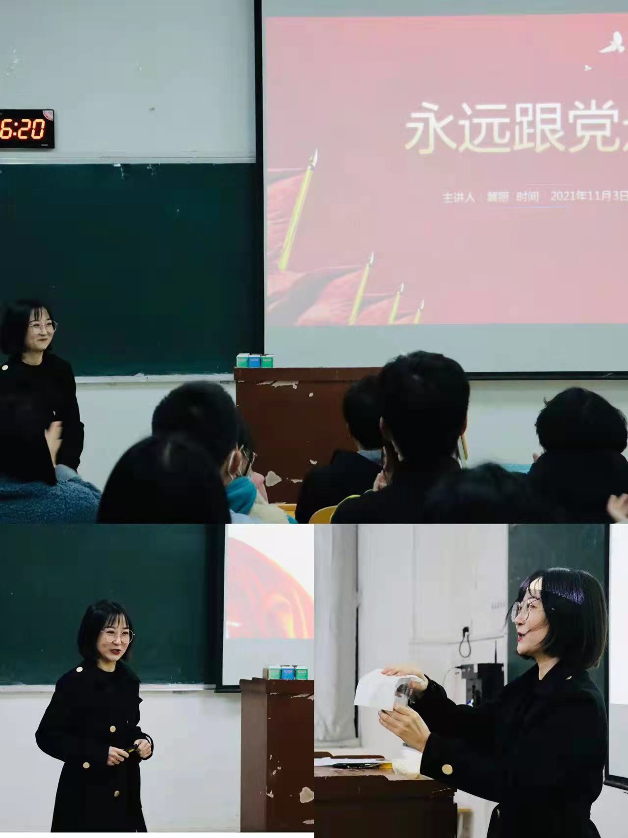 为了保障班会质量,提升辅导员思想政治教育水平和理论宣讲水平,管理学院在全体辅导员中间开展主题班会观摩课。第一次观摩课由冯蕊老师主讲,第二次观摩课由吉瑶老师主讲,第三次观摩课在11月3日晚由多次获得辅导员素质能力大赛一等奖的冀丽老师主讲,学生工作处副处长郑敏杰受邀全程指导。18级党员、班级骨干、网格管理员参加了本次活动。冀老师以党史知识开篇,运用数串和魔术的新颖方式,将基层党员抗击疫情、脱贫攻坚鲜活事例与学生党员日常先锋模范有机结合起来,寄语同学们生逢盛世当不负盛世,将自身发展与祖国命运紧密相连,永远感党恩、听党话、跟党走,做合格的社会主义建设者和接班人。