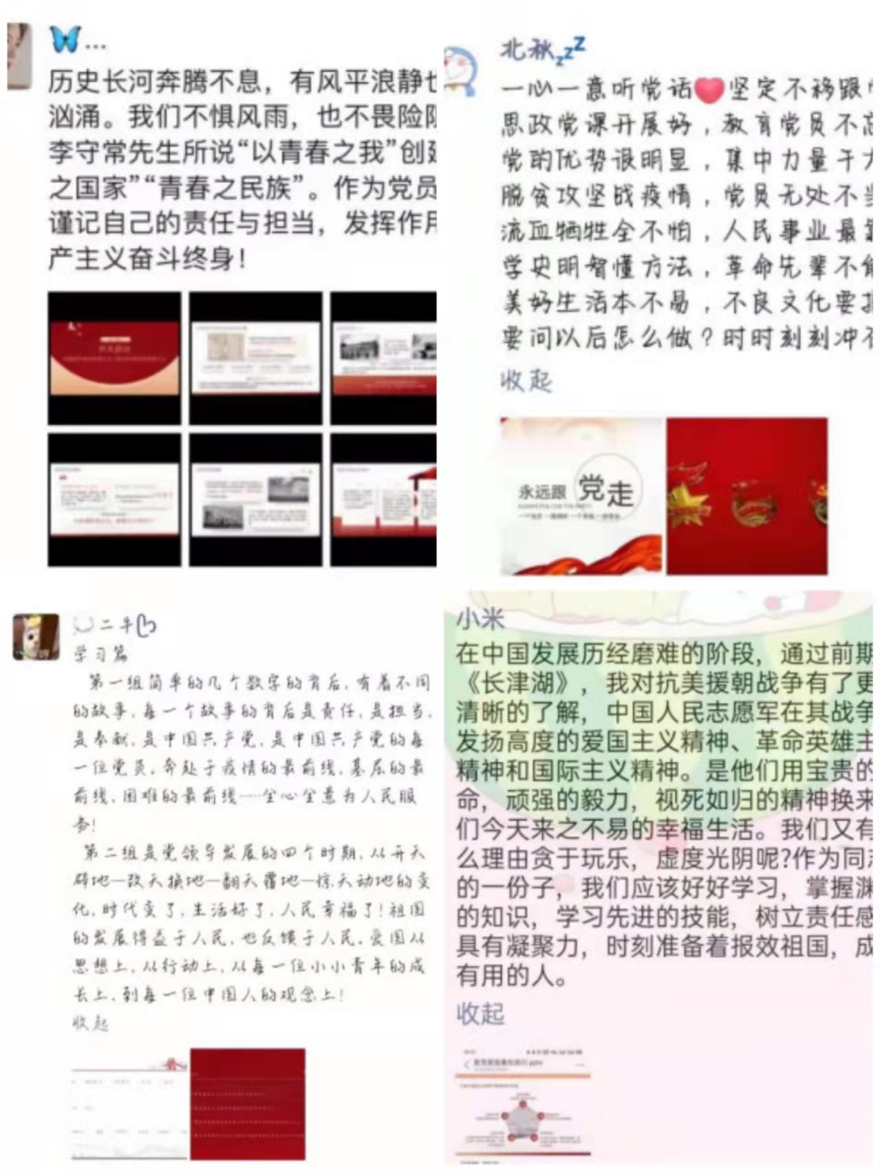 班级网格管理员刘源感言:通过本次党史学习,让我深刻认识到党史它不仅仅是一本书也是党的文化基础,作为新青年一代的党员,我们理应继承优良作风,传承红色基因!在即将面临的就业问题及论文答辩方面,都应积极响应学校的号召,认真对待每次招聘机会,随时与导师沟通,确保顺利结业!我也更加明确作为一名党员,我将坚定不移的践行信念在心,自觉在行这一理念!