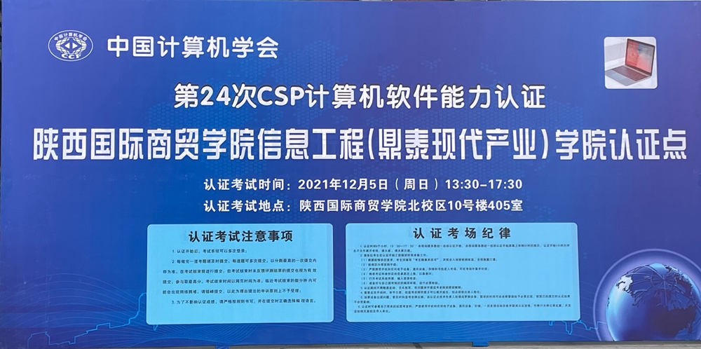 为提升信息工程(鼎泰现代产业)学院人才培养品质、加速内涵式发展,信息工程(鼎泰现代产业)学院积极筹备申请,并于2021年获批成为中国计算机学会授牌的CSP认证中心。也是陕西省获批CSP认证点的6所高校之一,其余学校为西安交通大学、西北工业大学、西安电子科技大学、西安理工大学、西安邮电大学计算机学院。