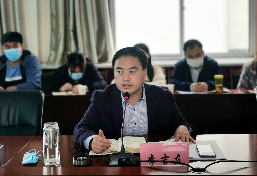 李吉友从社会面讲了当前的经济形势和就业环境,对我们今年所面临的就业严峻形势,要求大家一定要全员专业化的统筹谋划、全力推进、凝心聚力促进2022届毕业生充分就业。围绕如何做好就业工作,他要求,一是就业指导,引导毕业生认清形势,转变思想观念,准确定位;二是就业服务,通过举办线上招聘会、空中双选会等方式为毕业生搭建就业平台,建立就业优质基地;三是就业管理,以招生就业处为主导,二级学院为主体,双组长制推动就业工作目标稳步实现;四是就业反馈,积极开展毕业生回访工作,跟踪毕业生职业规划,反馈教育教学。