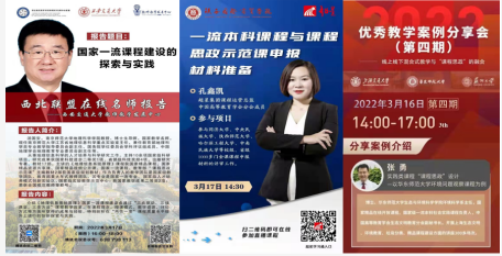 教师居家办公授课,除了完成日常教学任务和备课之外,还踊跃参与各种线上培训活动,“优秀教学案例分享会”、“一流本科课程与课程思政示范课申报材料准备”旨在探究课程思政设计,各位主讲人结合各自的课程内容,通过混合式教学模式示范课程思政建设与融合;“国家一流课程建设的探索与实践”报告给各位参与一流课程建设的教师提供了引导与思路,一流课程建设力求培养学生深度分析、大胆质疑、勇于创新的精神和能力,积极引导学生进行探究式与个性化学习,增加学生经过刻苦学习能力和素质提高的成就感。