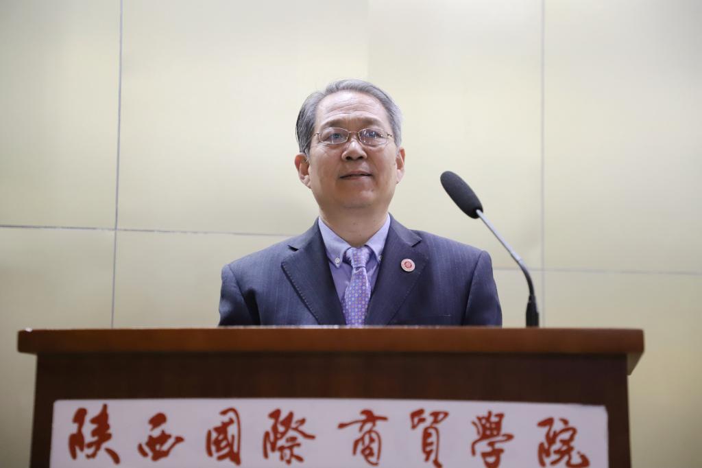 本网讯 3月30日下午,陕西国际商贸学院举行2022年全国“两会”精神辅导报告会。十三届全国人大代表、学校董事长赵超博士传达全国“两会”精神,常务副校长、党委副书记、纪委书记贾明远主持会议。