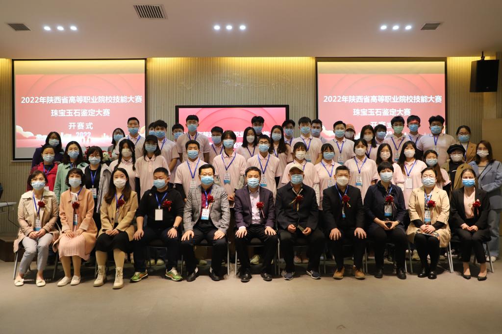 本网讯:4月8日上午,2022年陕西省高等职业院校技能大赛珠宝玉石鉴定赛项开赛式在我校院士工作站举行,长安大学地球科学与资源学院原副院长刘云华研究员,西北大学地质学教授陈丹玲,中国地质调查局西安地质调查中心珠宝鉴定主任王轶,陕西省宝玉石金银首饰质量监督检验站副站长雷引玲,西安市产品质量监督检验院珠宝贵金属检测中心顾问杜坚,陕西省宝玉石金银首饰质量监督检验站李青翠,西安市产品质量监督检验院珠宝中心主任周敏,陕西省宝玉石金银首饰质量监督检验站主检师李瑞璐,陕西国际商贸学院党委副书记、副校长李吉友,陕西国际商贸学院珠宝学院院长刘养杰、陕西际商贸学院教务处副处长李娟花以及陕西服装工程学院、陕西能源职业技术学院、延安职业技术学院、陕西职业技术学院、陕西国际商贸学院5个参赛院校代表参加开赛式,开赛式由珠宝学院党总支副书记张薇主持。
