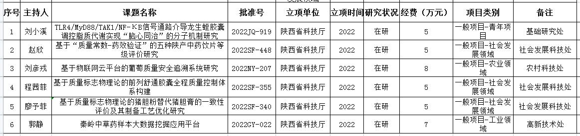 本网讯:近日,省科技厅公布了2022年陕西省科技计划项目资助结果,我校获批各类项目6项,立项经费35万元。获批项目中,自然科学基础研究计划青年项目1项,重点研发计划项目5项。