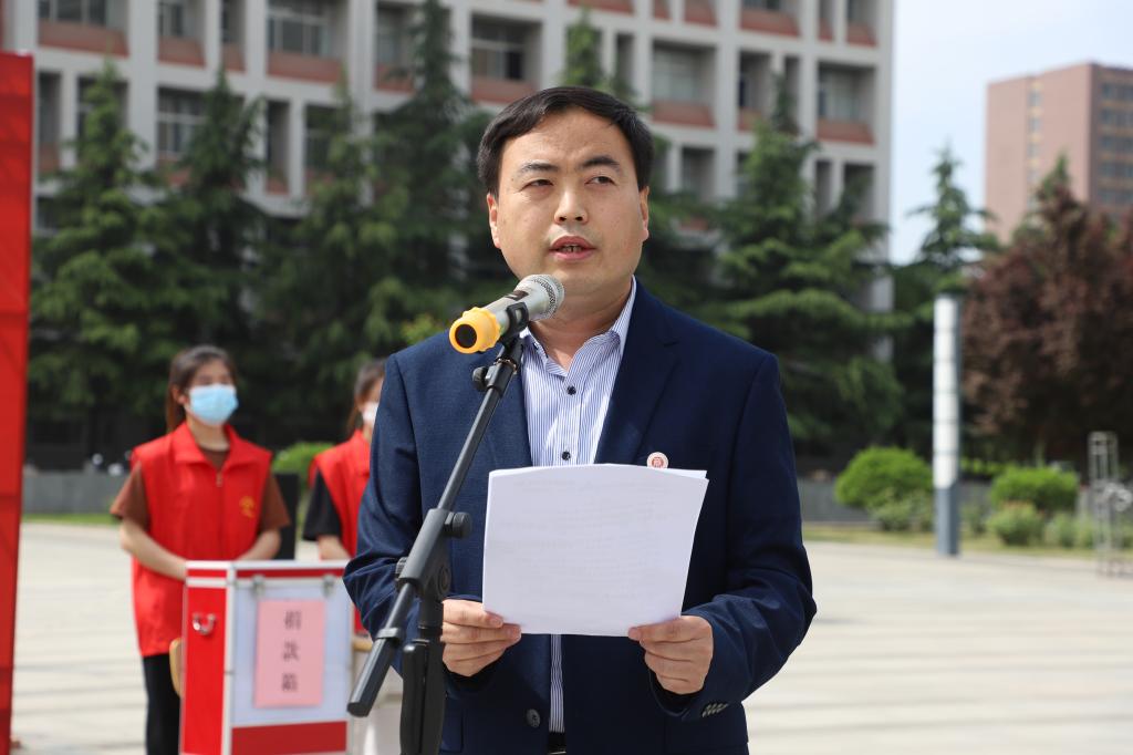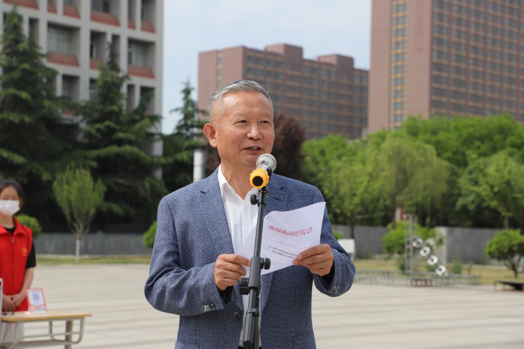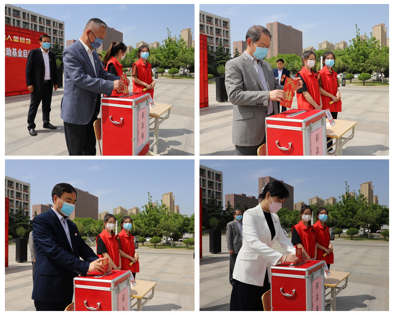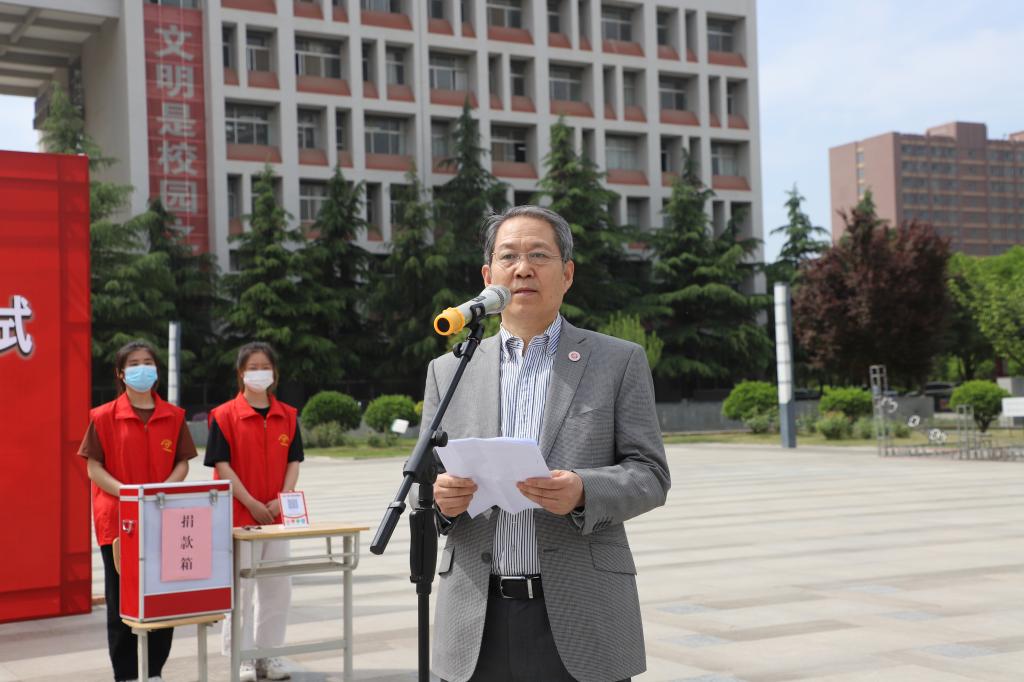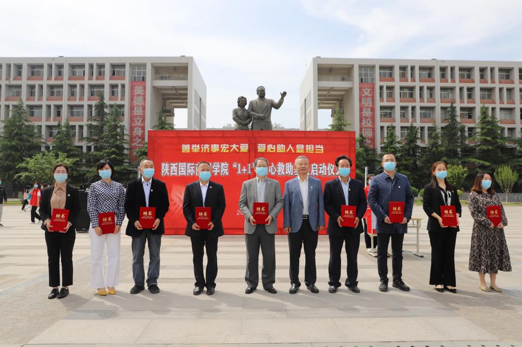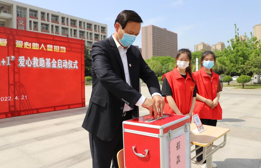 本网讯:为建立教职工多层次社会保障体系,拓展学校教职工危难救助渠道,弘扬“大爱无疆”校园精神,建设商院和谐大家庭。“1+1”爱心救助基金由学校董事会倡导发起,学校党政班子、学校工会积极响应实施,设立“陕西国际商贸学院 1+1 教职工爱心救助基金”。4月21日上午,学校在南校区广场举行1+1”爱心救助基金启动仪式,董事长赵超,校长王正斌,常务副校长、党委副书记、纪委书记贾明远,副校长万青以及各部门、各单位负责人、各分会负责人和职工代表等60余人参加仪式。启动仪式由党委副书记、副校长李吉友主持。