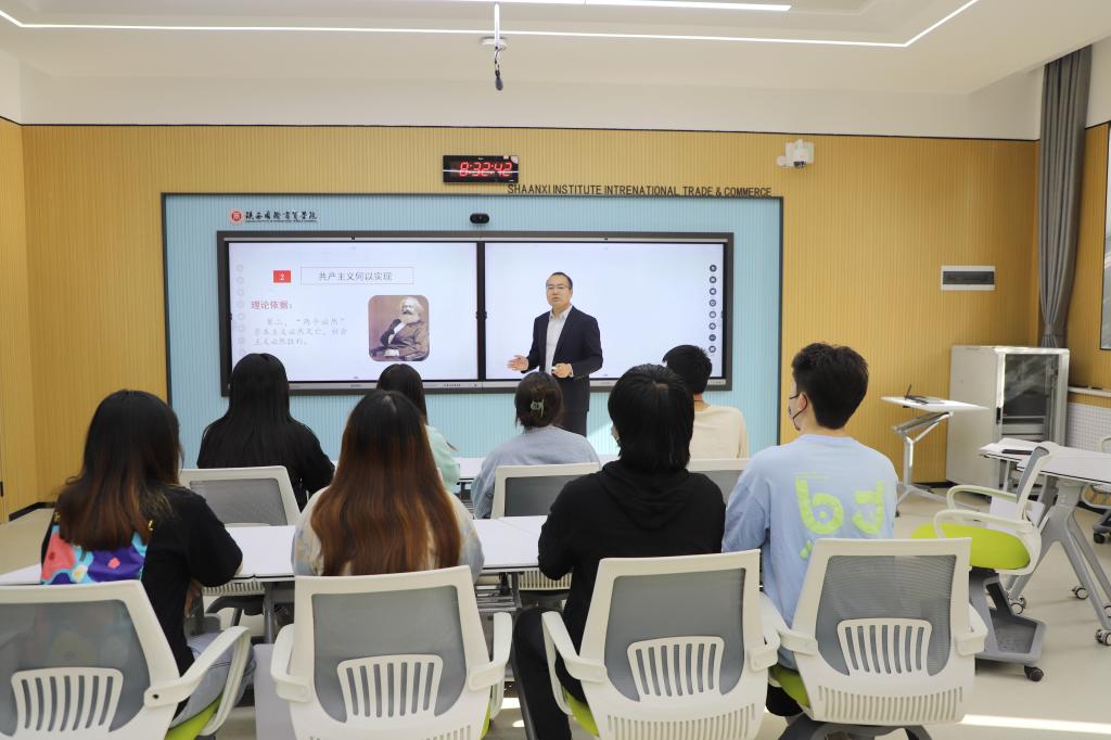 陕西高校思政课教师“大练兵”活动是陕西省认真贯彻落实习近平总书记在学校思想政治理论课教师座谈会上的重要讲话精神,全面提升思政课建设水平的重要举措。本届“大练兵”活动全省5570名思政课教师和部分专业课教师中脱颖而出的180名思政课教师进行了线上展示,评委线下评审,全省高校师生近10万余人同步观摩。张杰老师在现场展示环节中以《共产主义何以可能》为题目,他从“驳斥共产主义渺茫论”入手,从学生思想实际出发对共产主义出现的可能性进行深刻阐述,立足于马克思主义理论的厚度和深度,引导青年学生坚持共产主义远大理想,彰显了思政课教师政治强,情怀深,思维新,视野广的特点,展现了青年教师的朝气与活力。