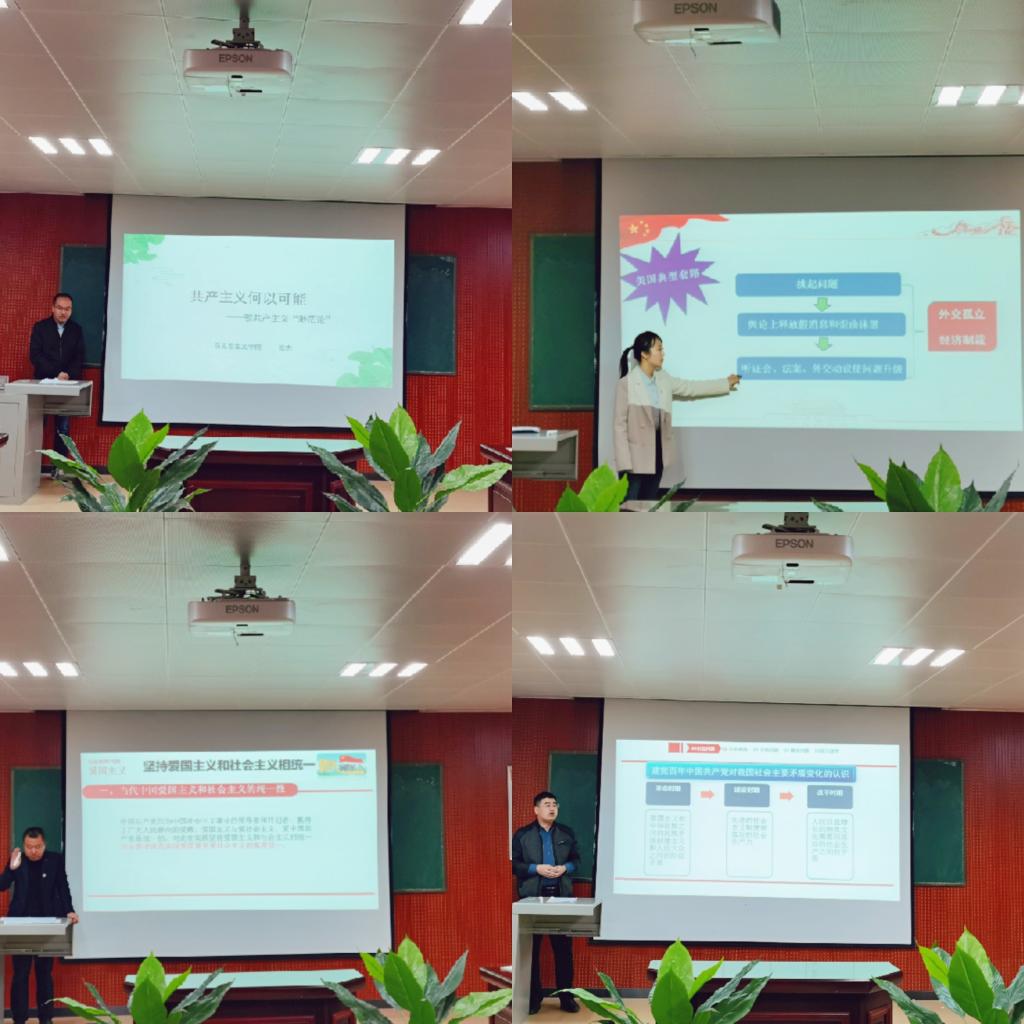 “大练兵”活动开展以来,我校领导高度重视、周密部署,教务处、党委工作部、马克思主义学院等思想政治工作领导小组成员单位密切协作,把抓好“大练兵”活动作为实施“四好”思政课创优行动,推进思想政治理论课改革创新的重要抓手,在全校范围内开展了思政课程和课程思政教师“大练兵”活动。马克思主义学院通过集体备课、观摩培训、教学比赛等一系列活动,以打造思政“金课”为目标,重点在课程内容、课程深度、教学形式、考核方式、学习效果等方面“下功夫”,狠抓五门思政课教学改革创新,建立“课堂教学+网络教学+实践教学+协同育人”四位一体的思政课育人新体系,通过院、校两级竞赛选拔和系列培训为省赛选优育强。省赛启动后,学校根据校赛比赛结果,推荐了6位教师参加省级展示活动。