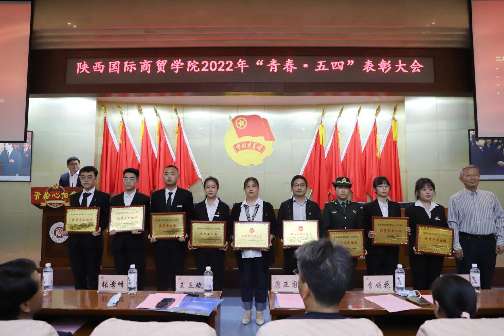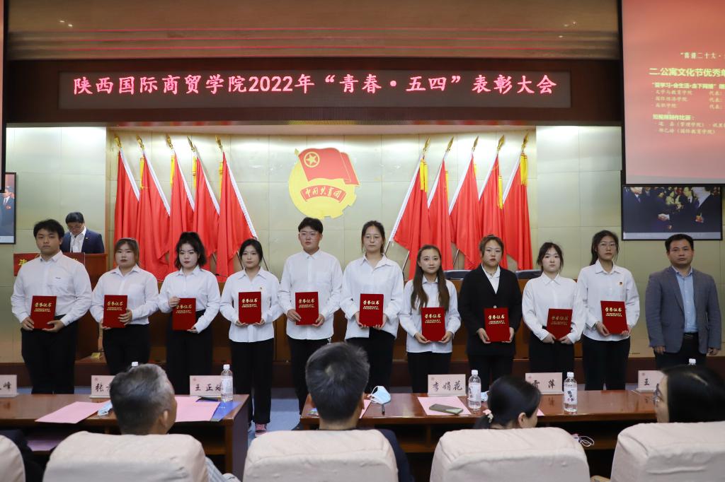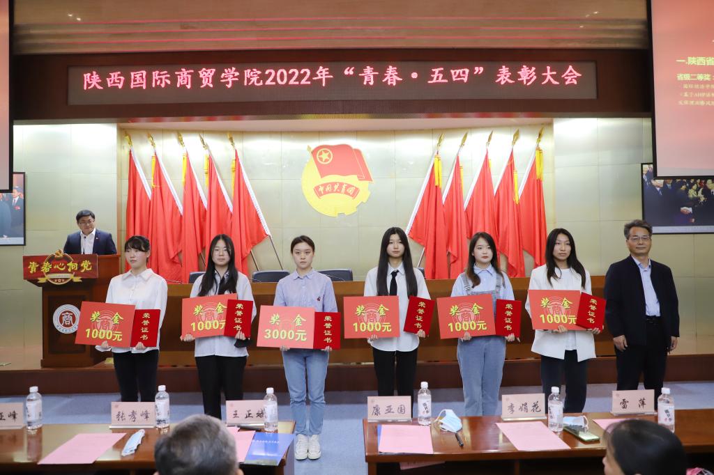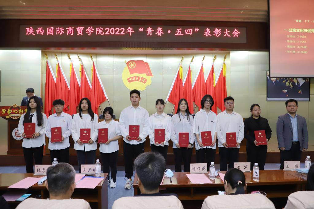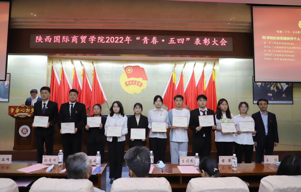 大会在嘹亮的国歌声中拉开序幕。会上,校团委负责人宣读了《陕西国际商贸学院“喜迎二十大、永远跟党走、奋进新征程”主题教育实践活动方案》;党委工作部负责人宣读了《关于2021年度陕西高校共青团述职评议结果的通报》《关于表彰2020-2021年度陕西省“两红两优”的决定》《关于表彰2020-2021年度咸阳市“两红两优”的决定》;学生工作部相关负责人宣读了《关于“五四”表彰的决定》《关于表彰“喜迎二十大、庆建团百年、扬志愿新风”主题活动先进集体和优秀个人的决定》《关于表彰2021年暑期大学生社会实践活动先进集体和优秀个人的决定》和《关于表彰第一届学生公寓文化艺术节获奖集体和个人的决定》。