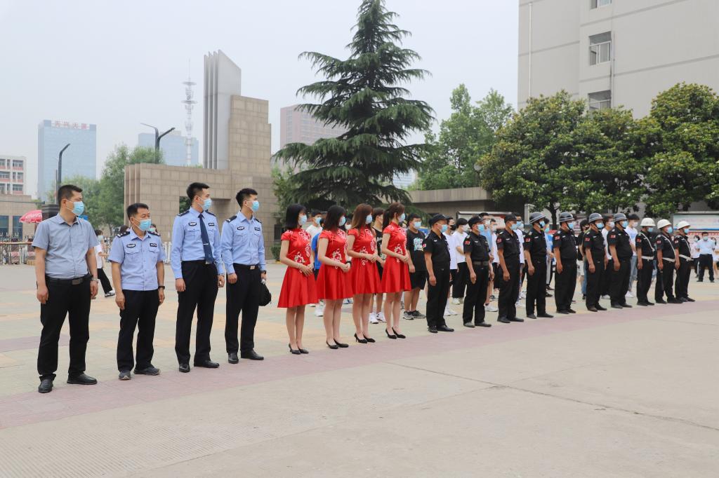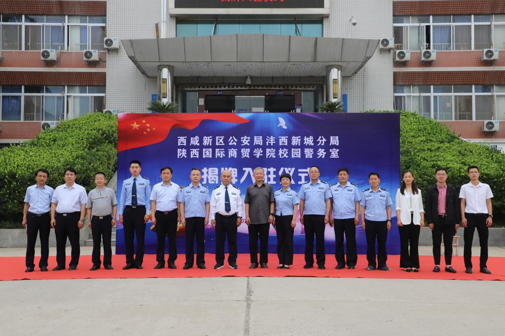 本网讯:5月27日上午,我校在北校区广场举行西咸新区公安局沣西新城分局陕西国际商贸学院校园警务室揭牌仪式。西咸新区公安局国保支队支队长王明,西咸新区公安局沣西新城公安分局党委委员、政秘科科长张强,沣西新城公安分局国保大队大队长马惠娟,沣西新城公安分局同文路派出所所长张树理,教导员武爱航,沣西新城公安分局国保大队民警秋军旗、徐扬,驻校民警刘兴毓和学校校长王正斌出席仪式,学校相关部门负责人、校卫队和部分学生代表等参加仪式。仪式由党委副书记、副校长李吉友主持。