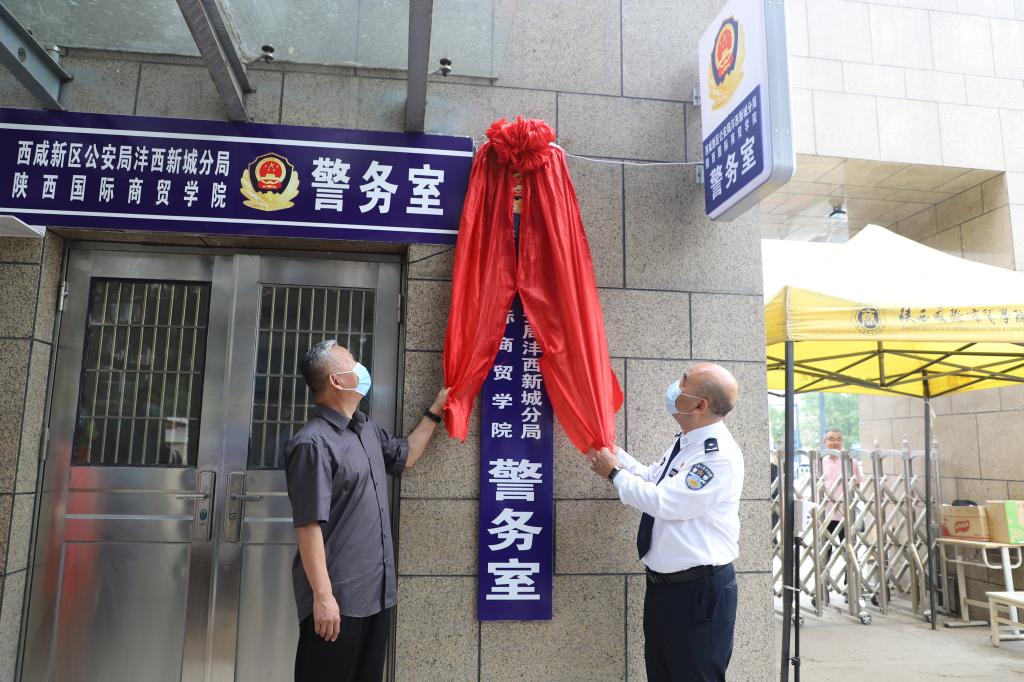 西咸新区公安局国保支队支队长王明和学校校长王正斌为警务室揭牌。