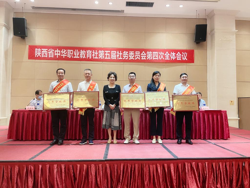本网讯:5月30日上午,陕西省中华职业教育社第五届四次全体会议在西安召开,会议对陕西省第四届黄炎培职业教育奖获奖单位和个人进行表彰,陕西国际商贸学院荣获“优秀学校奖”,学校副校长万青、高职学院负责人参会。