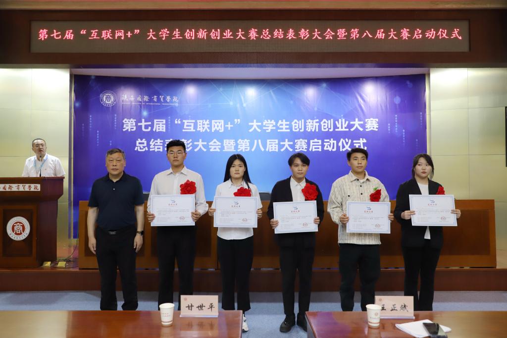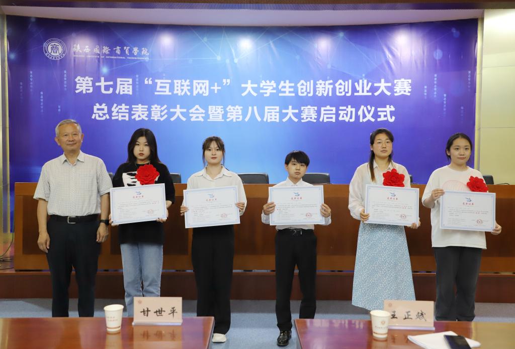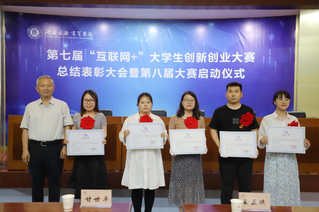 会议对第七届中国国际“互联网+”大学生创新创业大赛陕西赛区10个获奖项目的指导教师和学生进行了表彰。时装艺术学院、医药学院分别代表指导教师和参赛学生做了会议交流及经验分享。