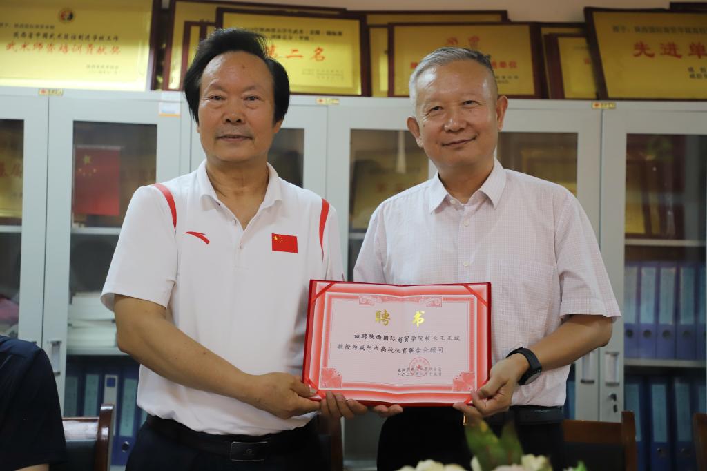陈小龙宣读了关于增补体育联合会成员的通知;联合会主席、刘万斌教授为陕西国际商贸学院校长王正斌教授颁发顾问聘书并作了咸阳市高校体育联合会成立以来的工作回顾及2022年工作计划的报告。对今后体育联合会的工作进行了部署,安排下半年举办两项赛事,并要求各高校在教会、勤练、常赛上下功夫。会上,咸阳市体育文化协会会长王保训、咸阳市电视台张智斌科长都作了讲话,表示今后会加强与各高校间的联系,支持市高校体育联合会的各项活动,加强对高校体育活动的宣传报导。