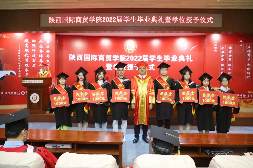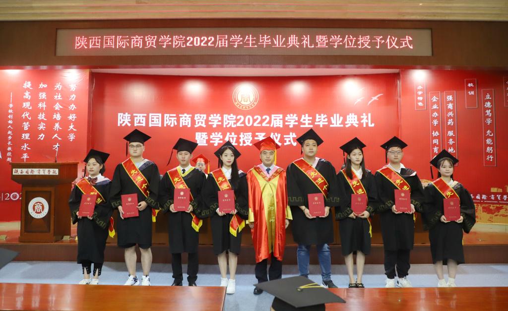 李吉友宣读《陕西国际商贸学院关于准予2022届白超等5617名学生毕(结)业的决定》《陕西国际商贸学院关于授予2022届本科毕业生白超等3103名学生学士学位的决定》《陕西省教育厅关于表彰2022届陕西高校优秀毕业生和优秀学生干部的通报》《陕西国际商贸学院关于表彰2022届优秀毕业生和优秀学生干部的决定》《陕西国际商贸学院关于表彰2022届考取硕士研究生毕业生的决定》。