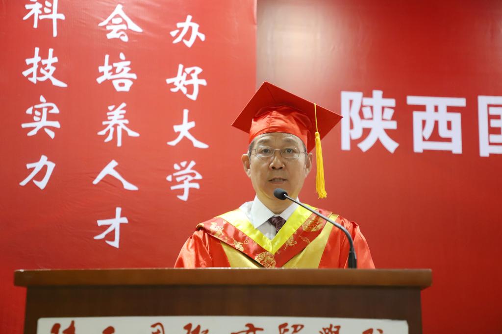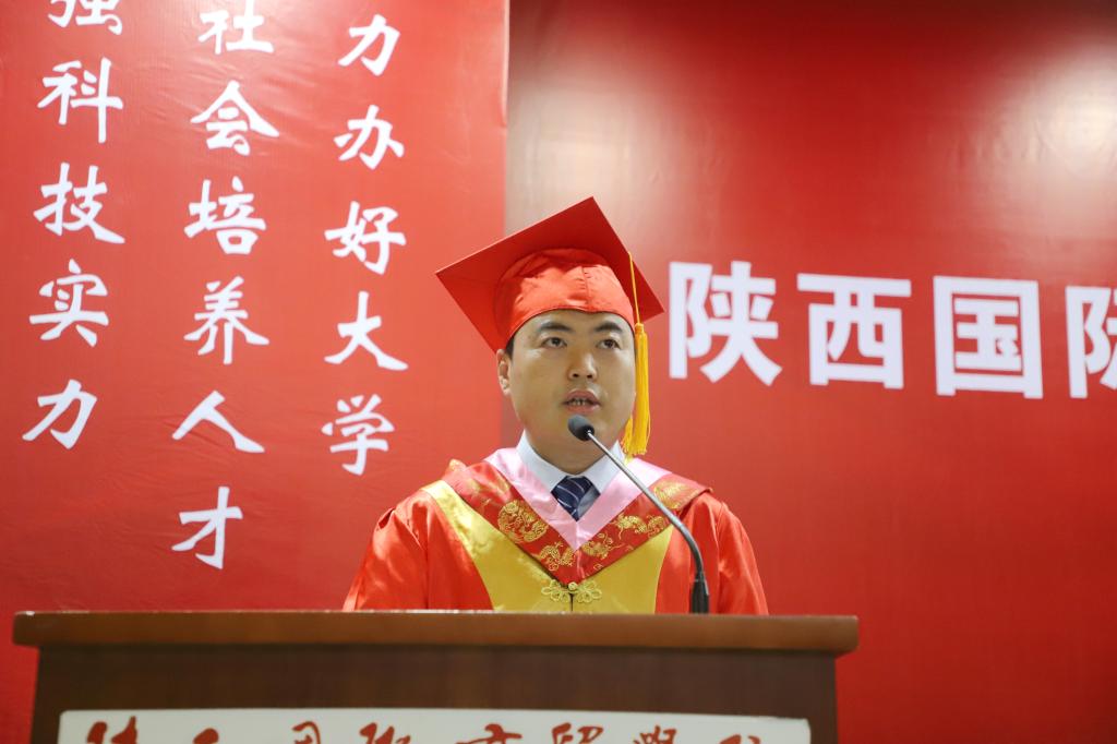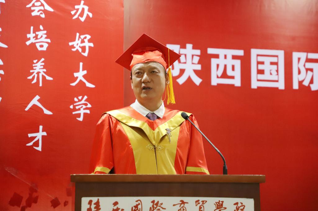 董事长赵超代表学校向毕业生送上诚挚的祝贺和美好的祝福。他在题为《活出青春该有的模样》的讲话中寄语全体毕业生,一是保持思想上的独立,做自己的英雄。要学会思考,善于分析,把立德放在为人处事的首位,做到明大德、守公德、严私德;二是保持行动上的主动,拼实干的青春。要脚踏实地、仰望星空,在不断克服困难、战胜挫折中收获成长、收获成功;三是保持理想与时代同行,做有为之士。要把牢理想信念这个人生“总开关”,努力把自己的小我融入到祖国的大我、人民的大我之中,用自己的知识、能力,在创新创业中有所作为。此去一别,山长水阔;未来已来,青春可待,愿你们不畏将来,不念过往,心怀梦想,顽强生长,相信未来。