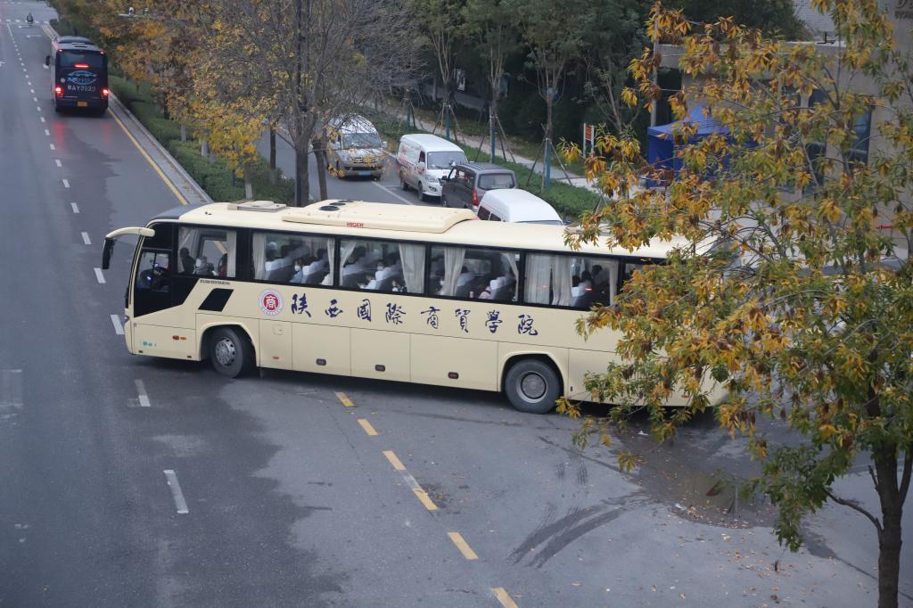 10月28日,学校对接核酸检测机构,统一组织所有考生在考前24小时内进行核酸检测。10月29日清晨,在校防疫办、教务处、学生处、后勤保障处和各二级学院的精心组织下,我校共派出27辆送考专车,免费接送参加考试的学生。